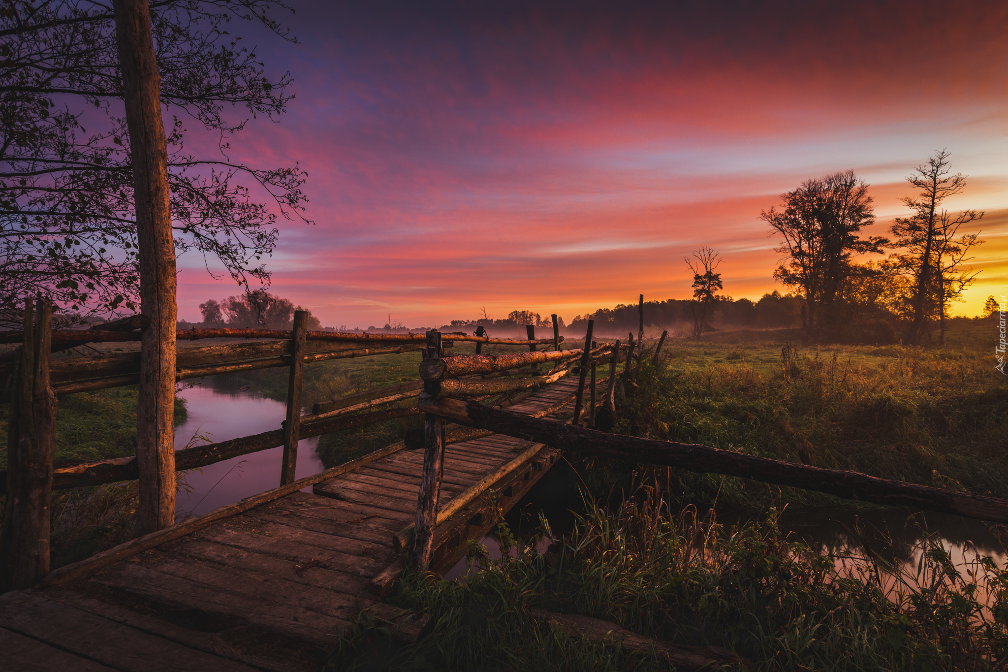 Edytor tapety: Most na rzece o wschodzie słońca