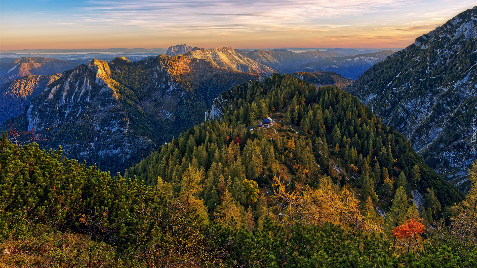 Edytor tapety: Schronisko na szczycie zalesionej góry