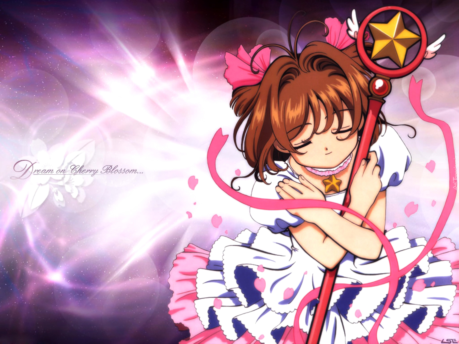 Edytor tapety: Cardcaptor Sakura, dziewczyna, napisy, różdżka