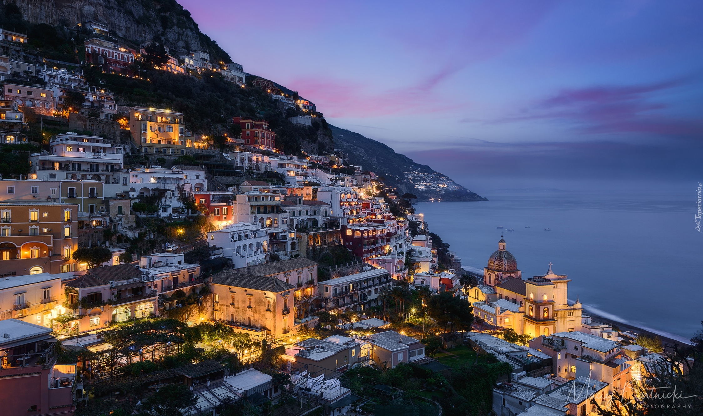 Edytor tapety: Oświetlone budynki we włoskiej miejscowości Positano