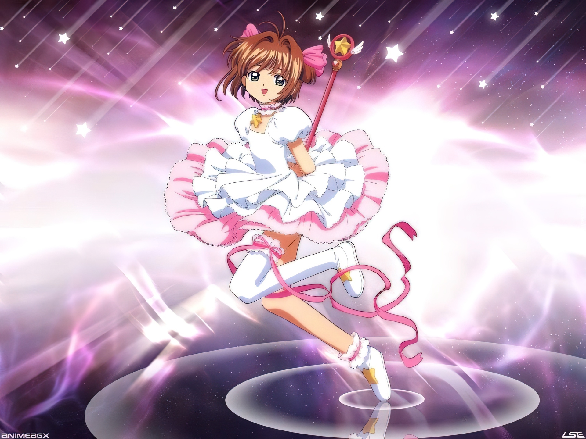 Edytor tapety: dziewczyna, wtstęgi, Cardcaptor Sakura, kij
