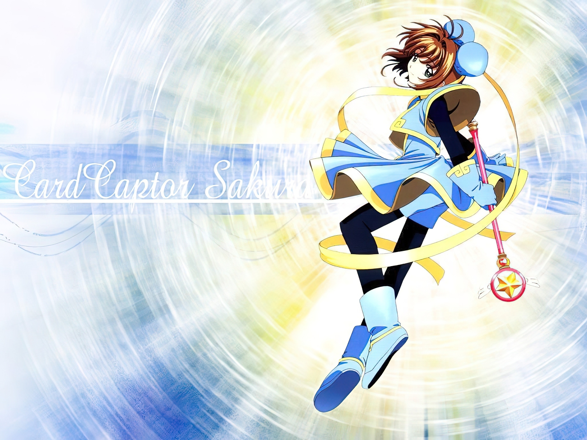 Edytor tapety: Cardcaptor Sakura, kobieta, napisy, szarfa, kij