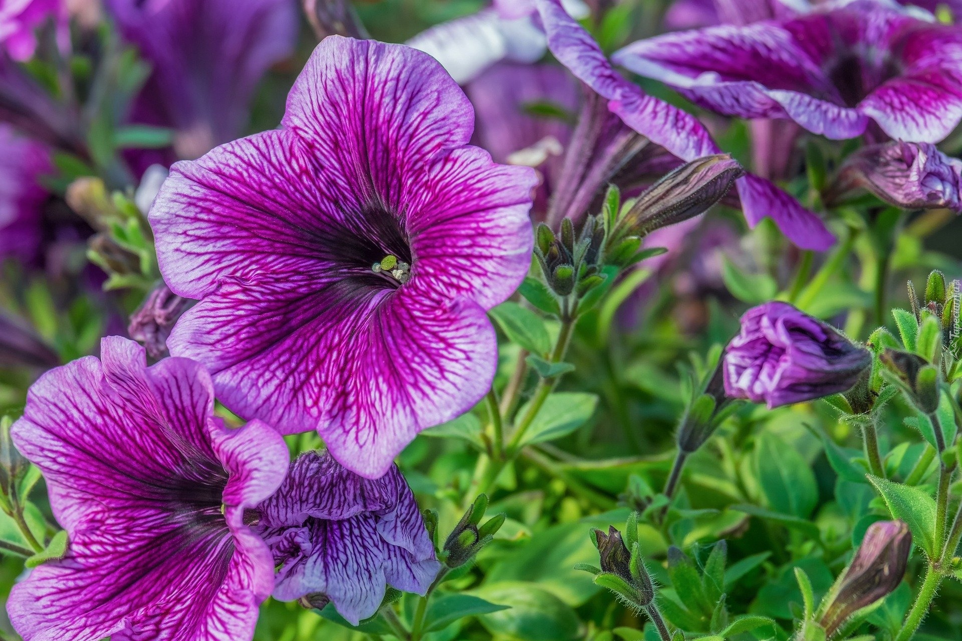 Edytor tapety: Fioletowe petunie z pąkami