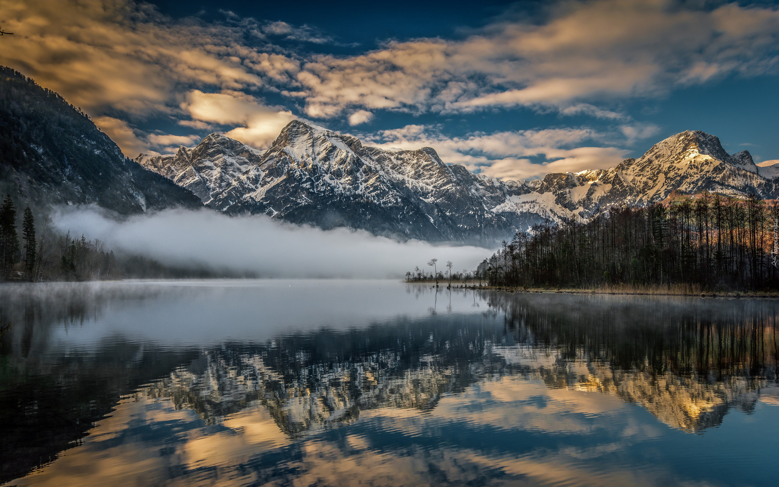 Edytor tapety: Mgła nad jeziorem Almsee