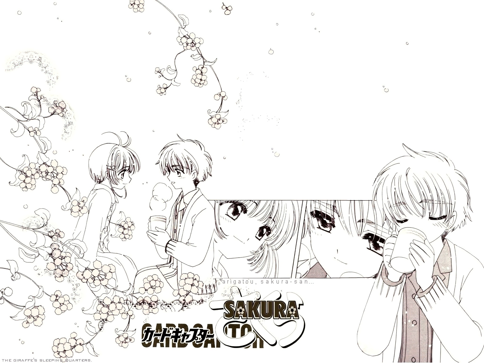 Edytor tapety: Cardcaptor Sakura, ludzie, napisy, szkic, kubek, kwiaty