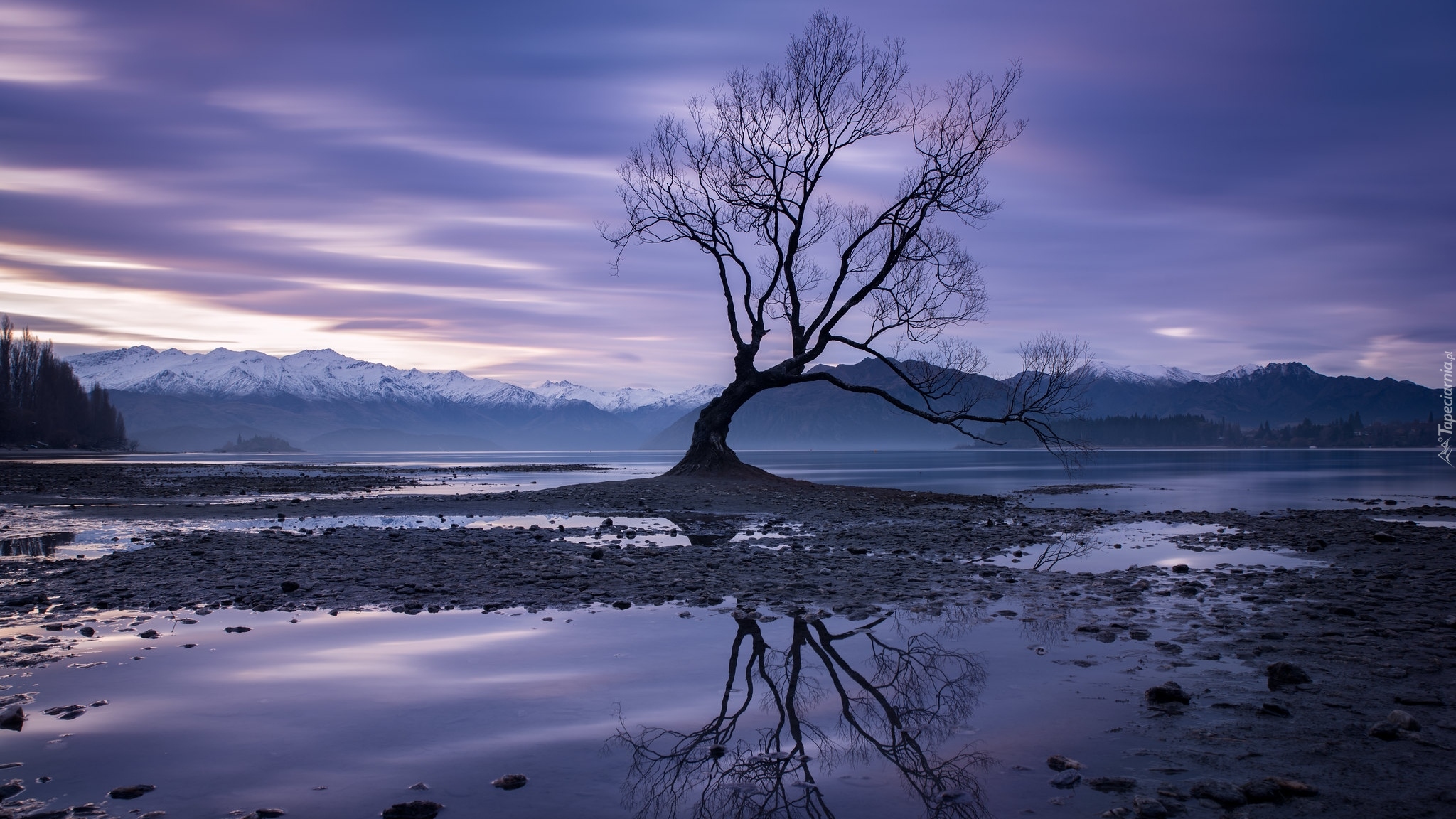 Edytor tapety: Bezlistne drzewo na jeziorze Wanaka