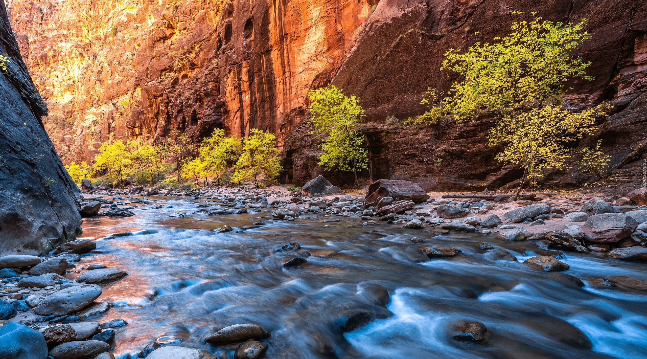 Edytor tapety: Rzeka na kamieniach przepływająca przez wąwóz