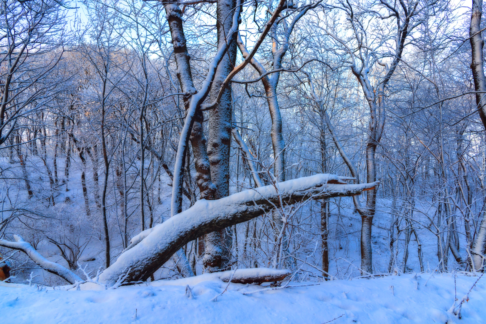 Edytor tapety: Zaśnieżone drzewa i konary w lesie