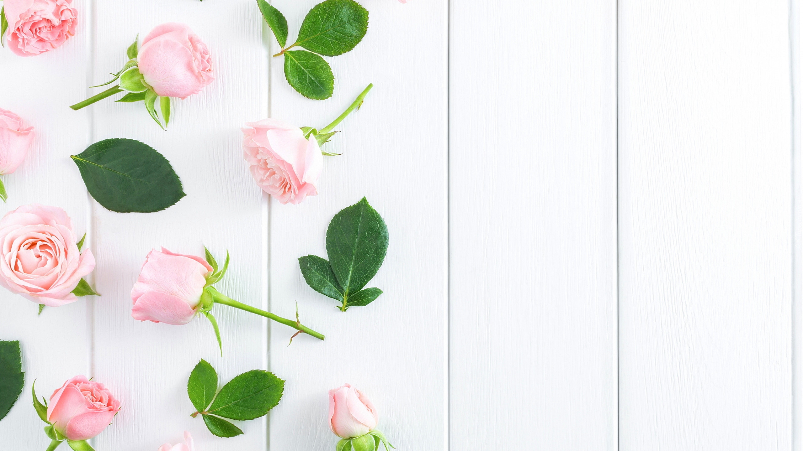 Edytor tapety: Różowe róże z listkami na deskach