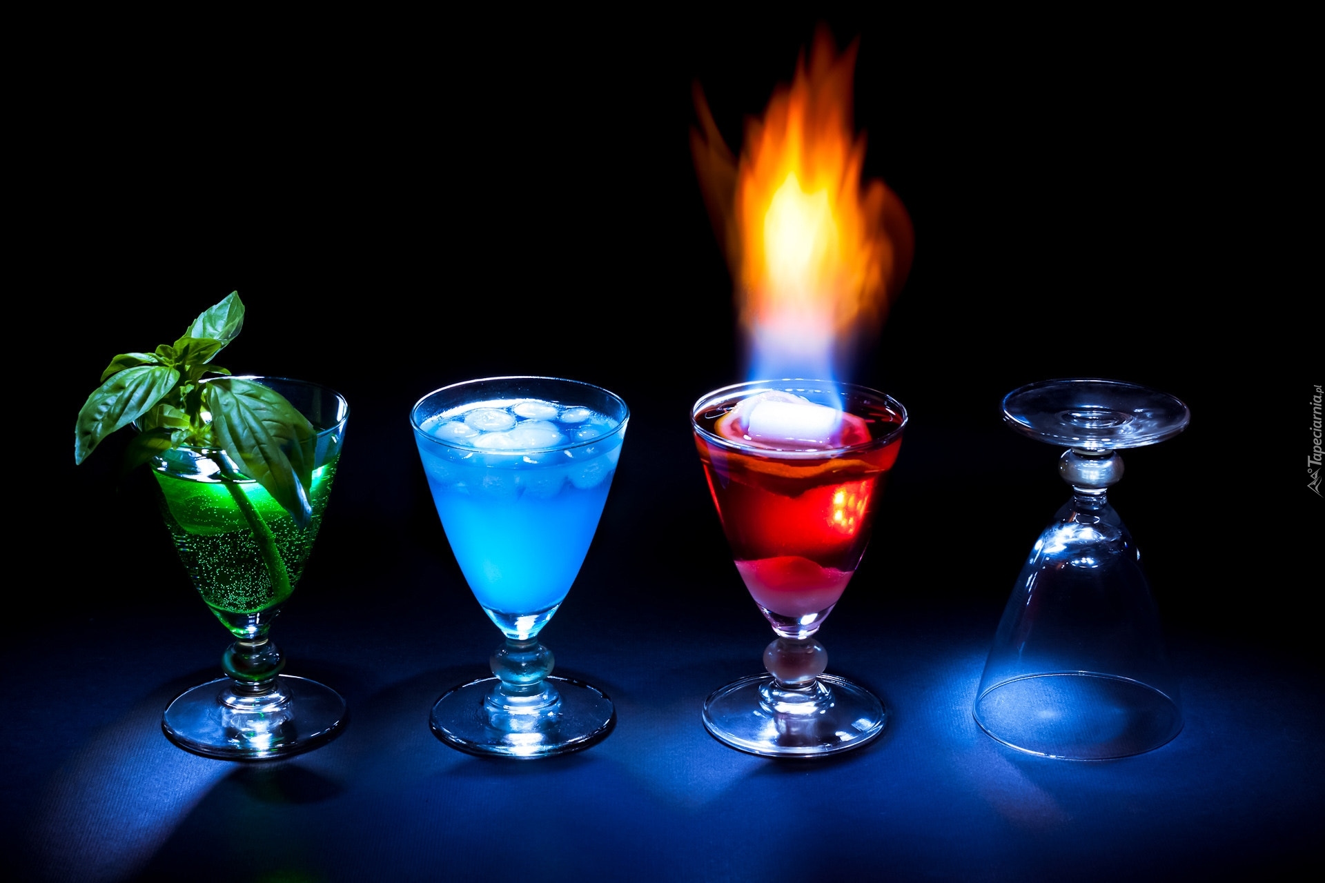 Edytor tapety: Kieliszki z kolorowymi napojami alkoholowymi