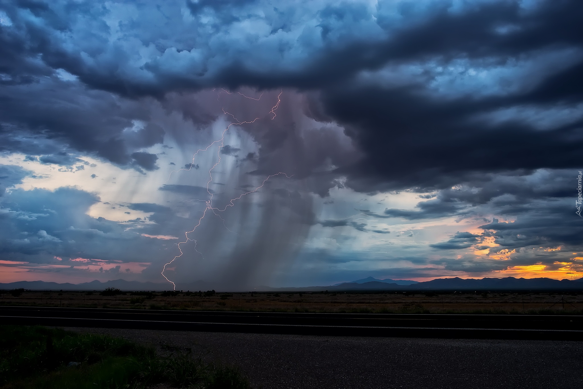 Edytor tapety: Pioruny i ciemne chmury nad polem