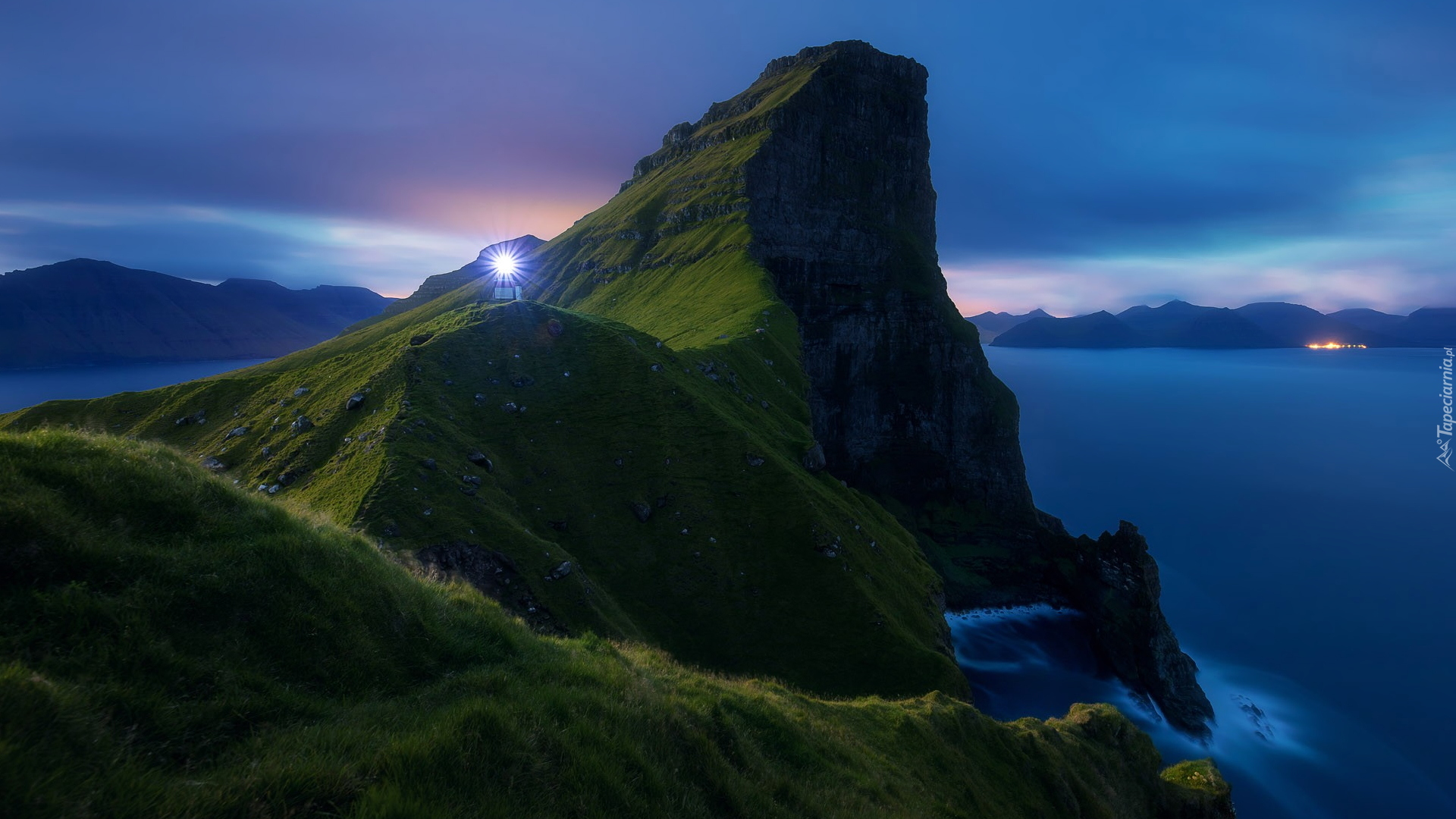 Edytor tapety: Światło latarni morskiej Kallur Lighthouse na wyspie Kalsoy