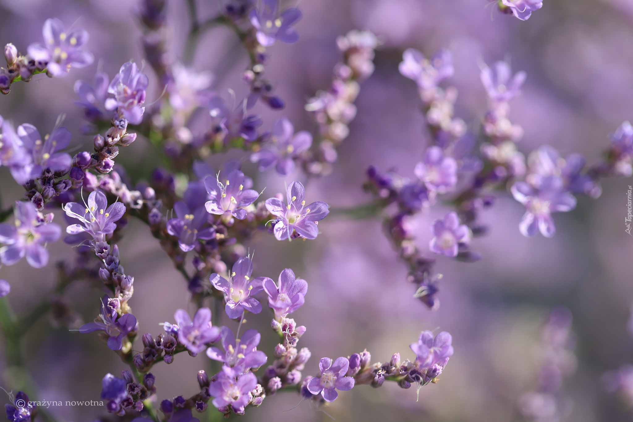 Edytor tapety: Fioletowe kwiatuszki na gałązce
