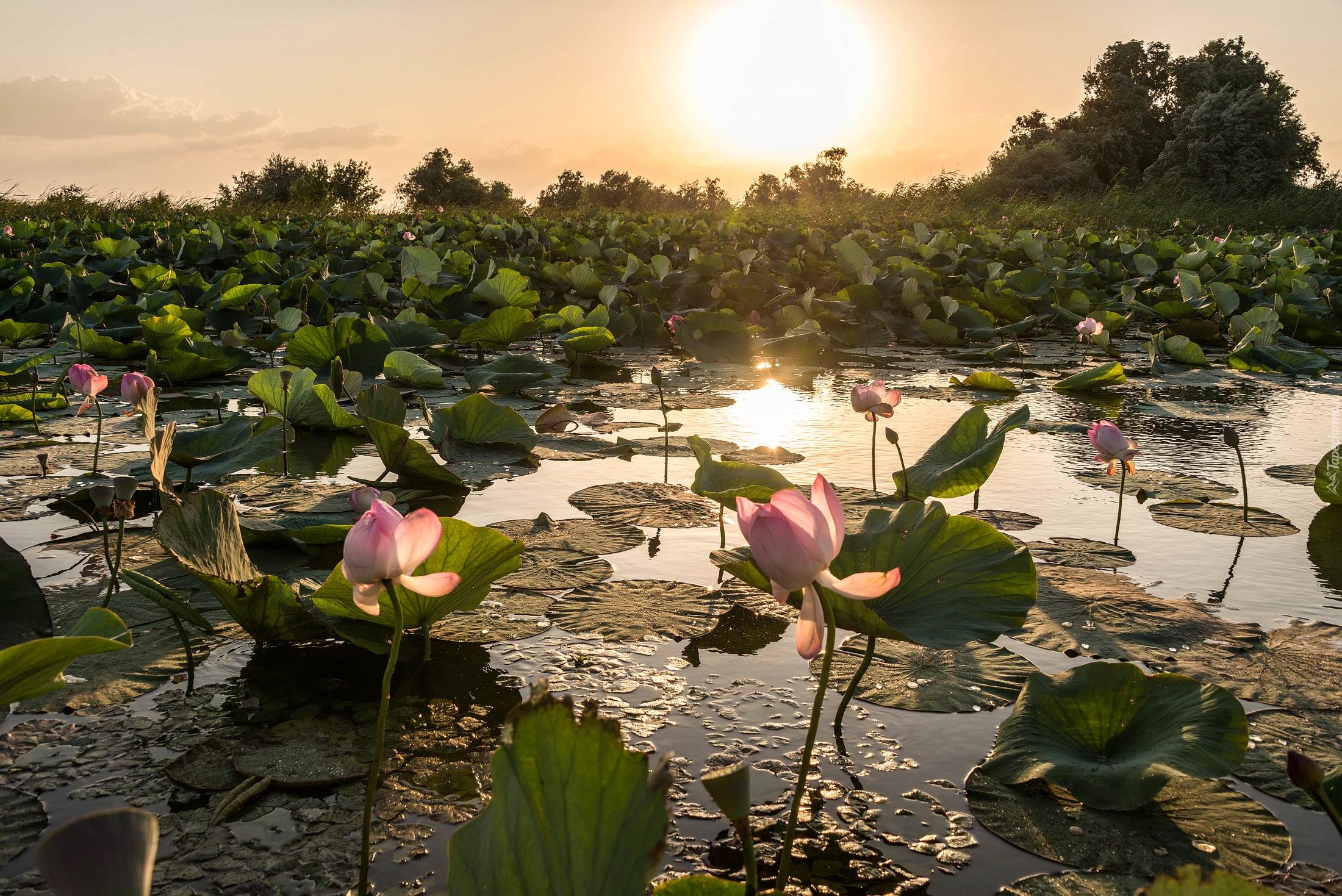 Edytor tapety: Kwiaty lotosu w słońcu