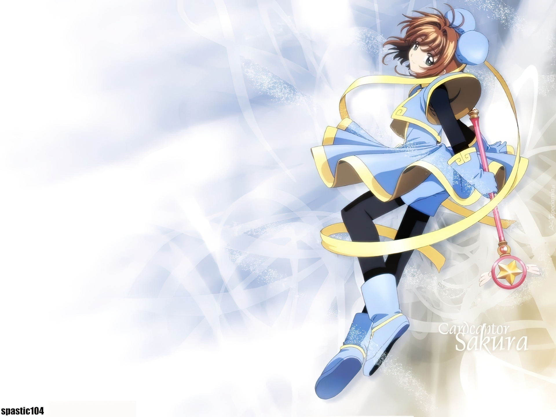 Edytor tapety: Cardcaptor Sakura, dziewczyna, szarfa, kij
