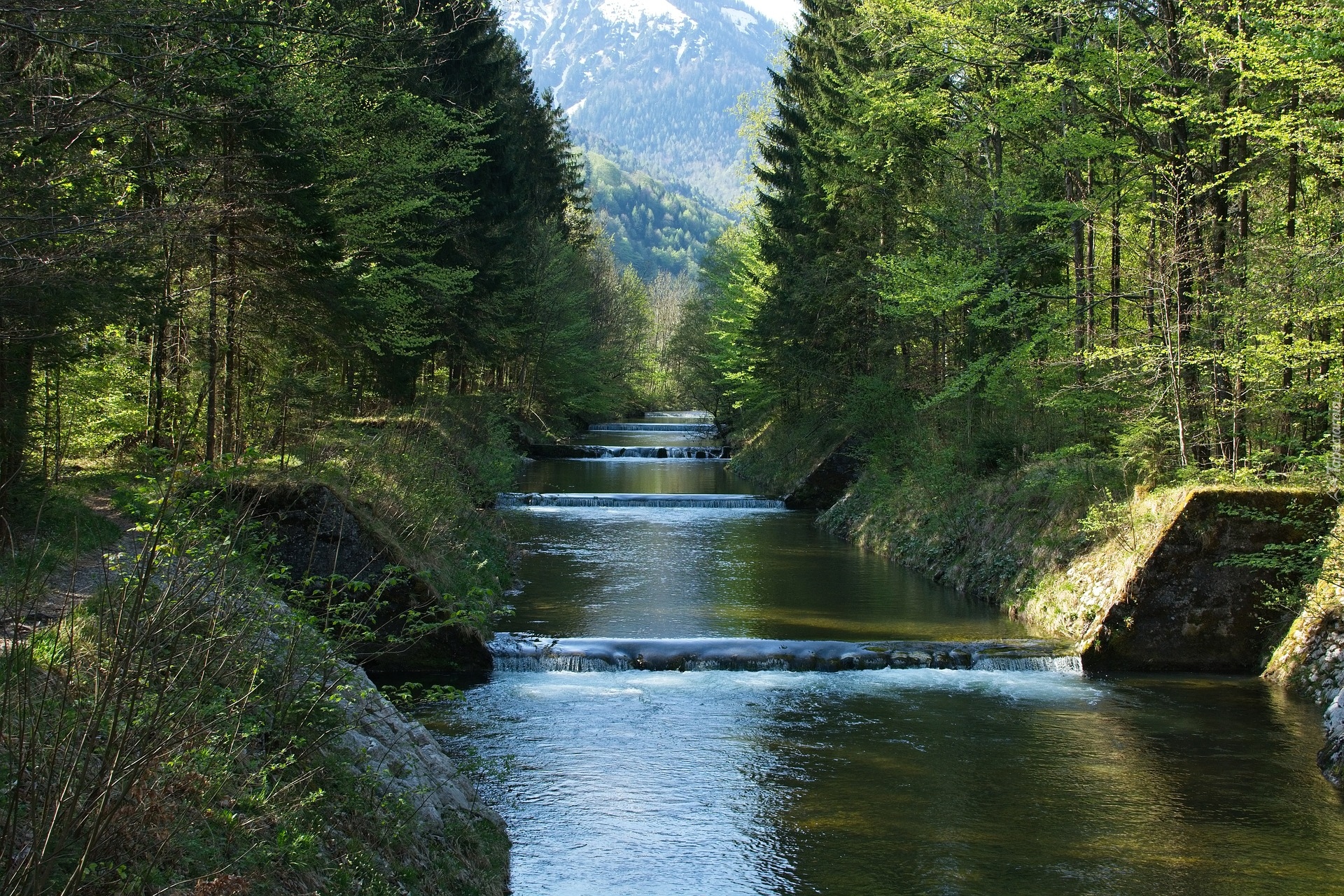 Edytor tapety: Progi wodne na leśnej rzece