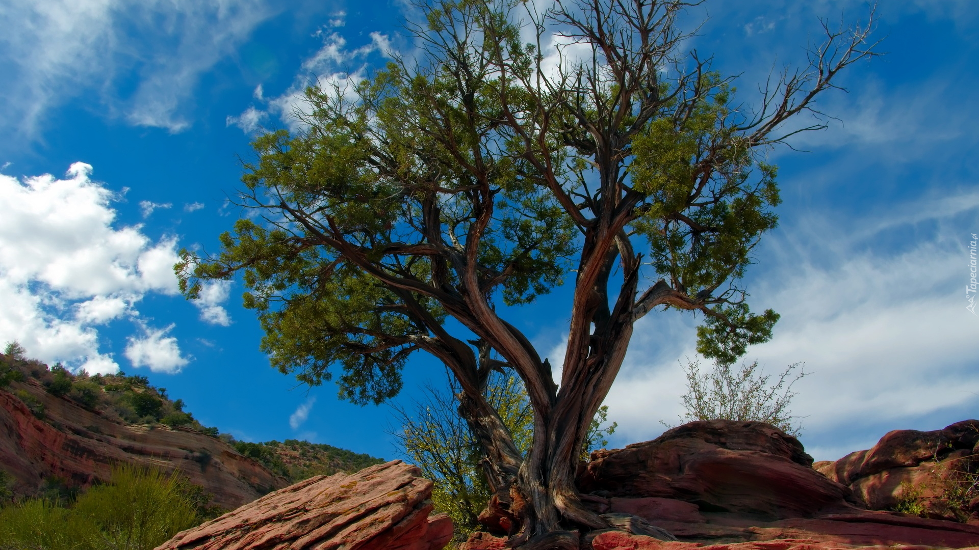 Edytor tapety: Zielone drzewo na skale