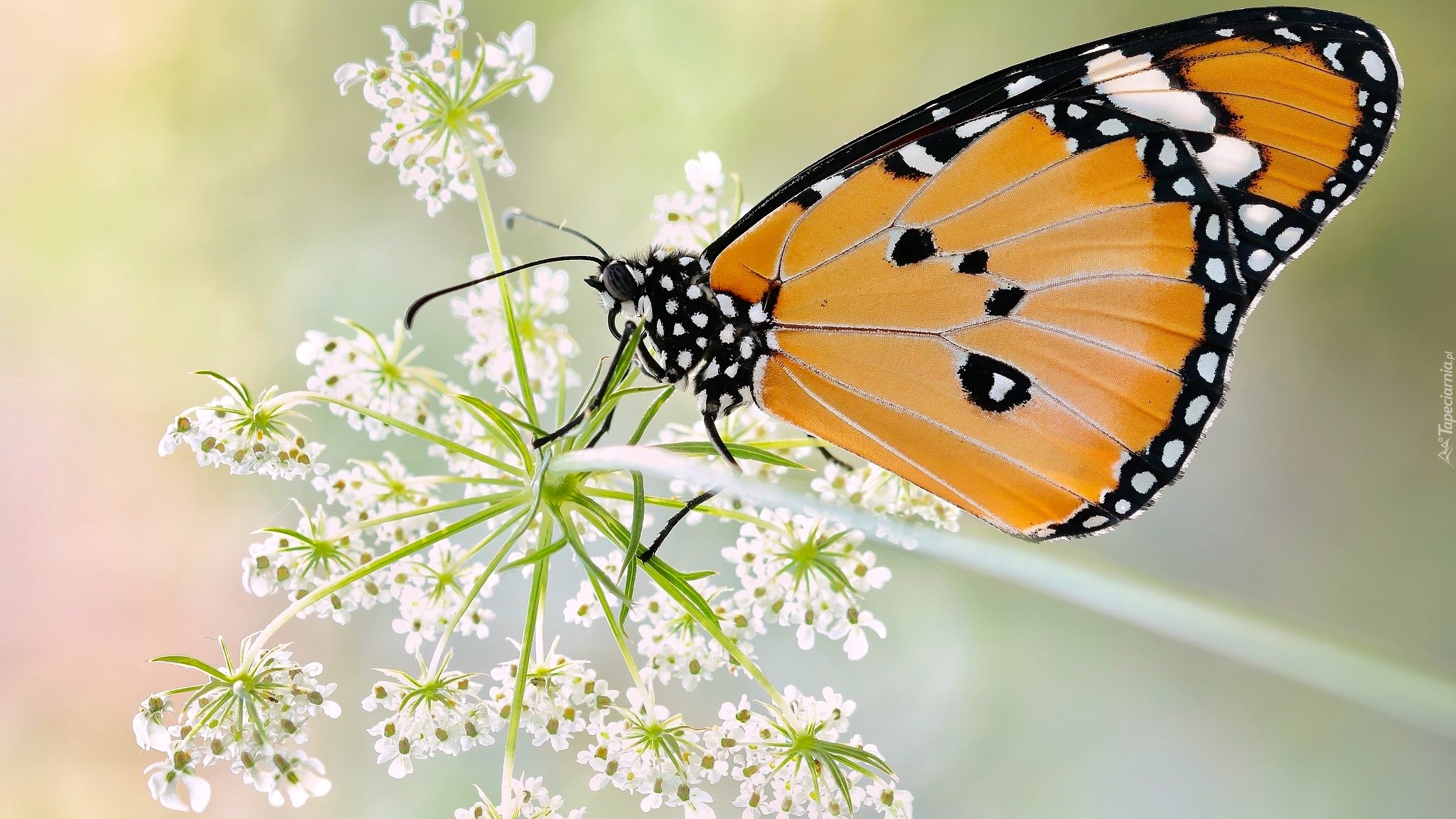 Edytor tapety: Monarcha złocisty na dzikiej marchwi