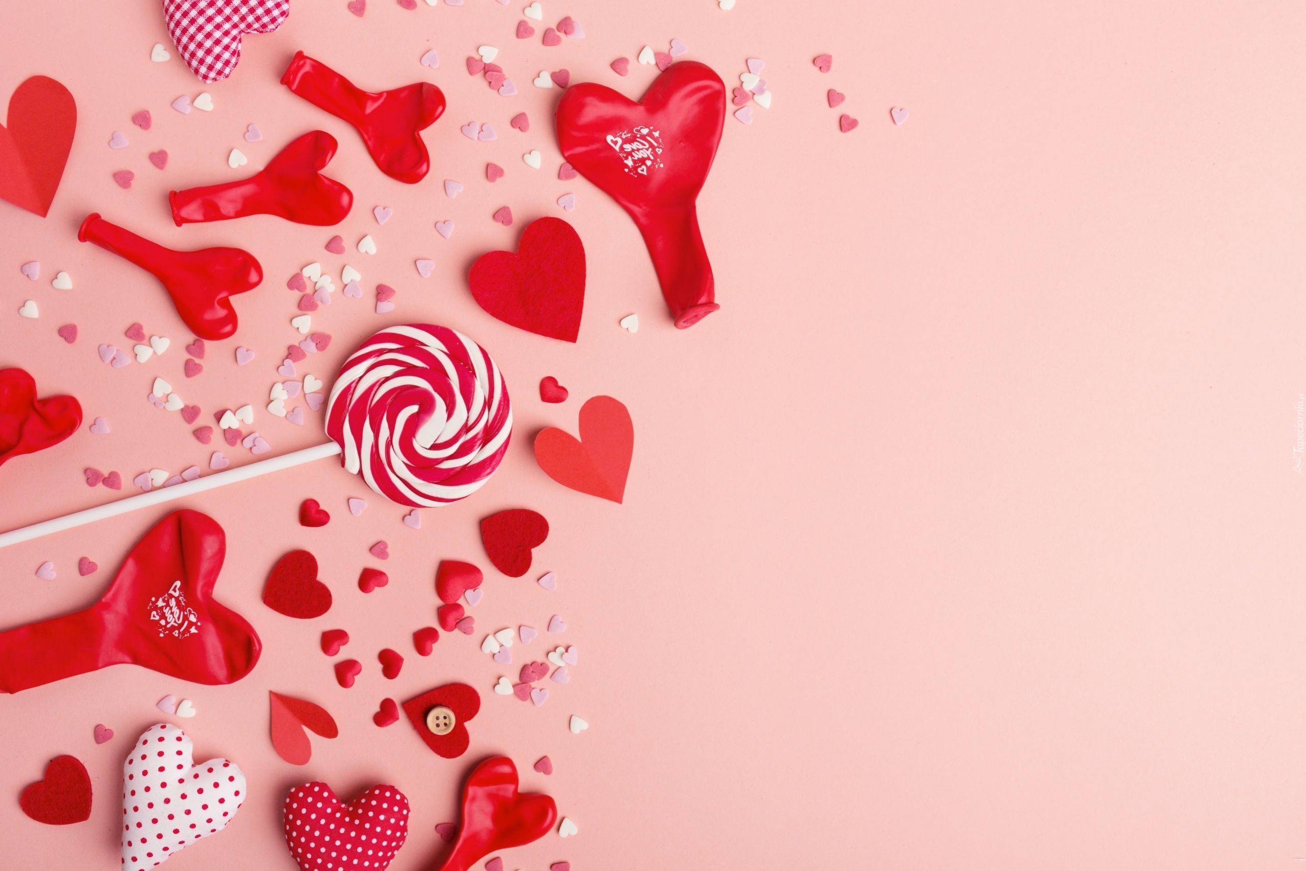 Edytor tapety: Baloniki w kształcie serca wokół lizaka