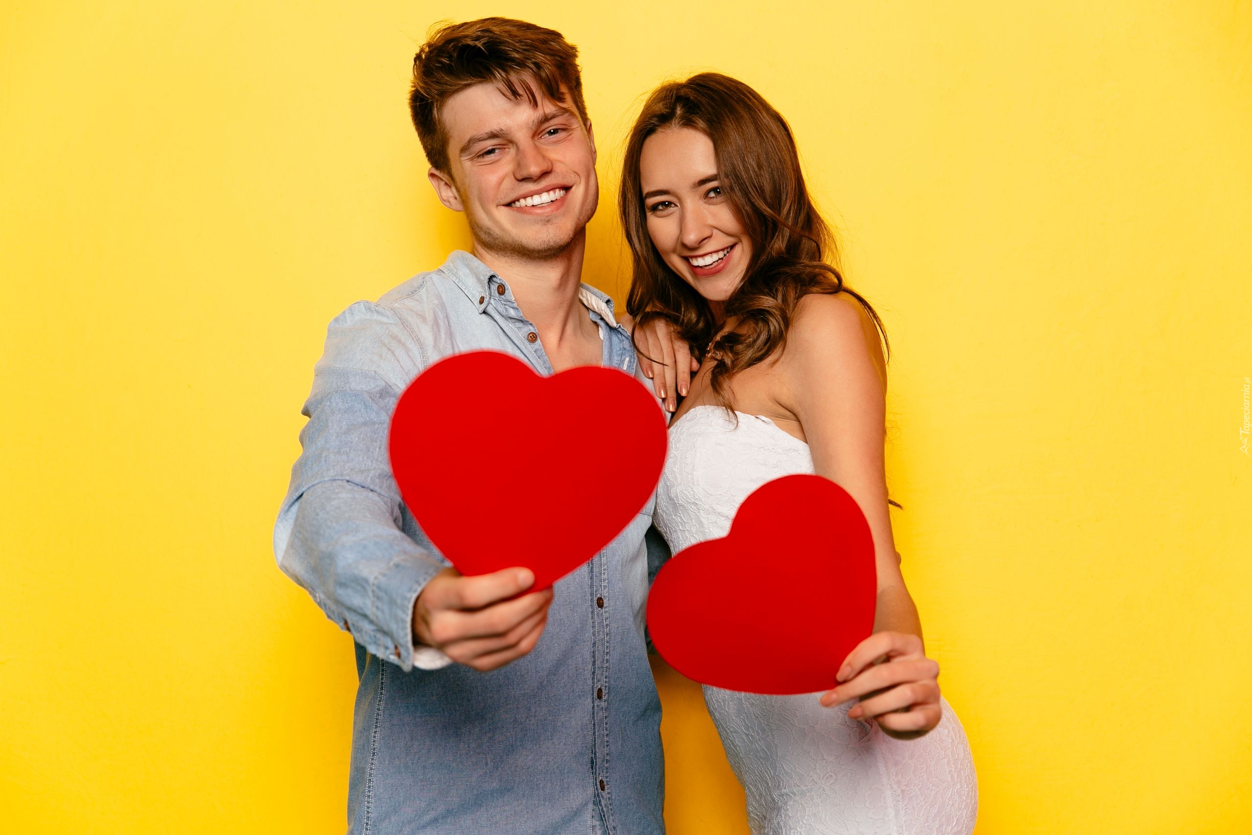 Edytor tapety: Uśmiechnięta para z sercami w rękach