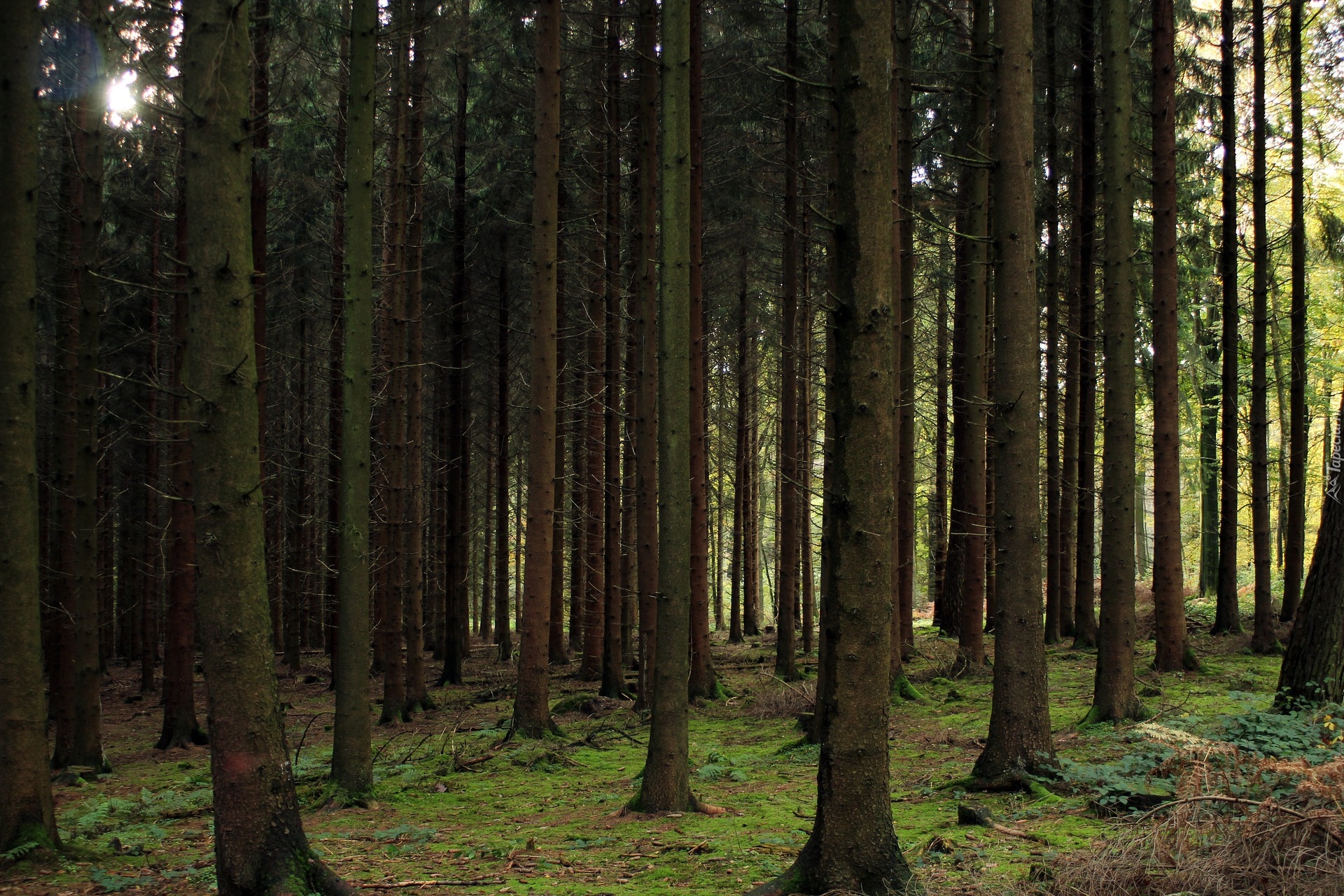 Edytor tapety: Wysokie drzewa iglaste w lesie