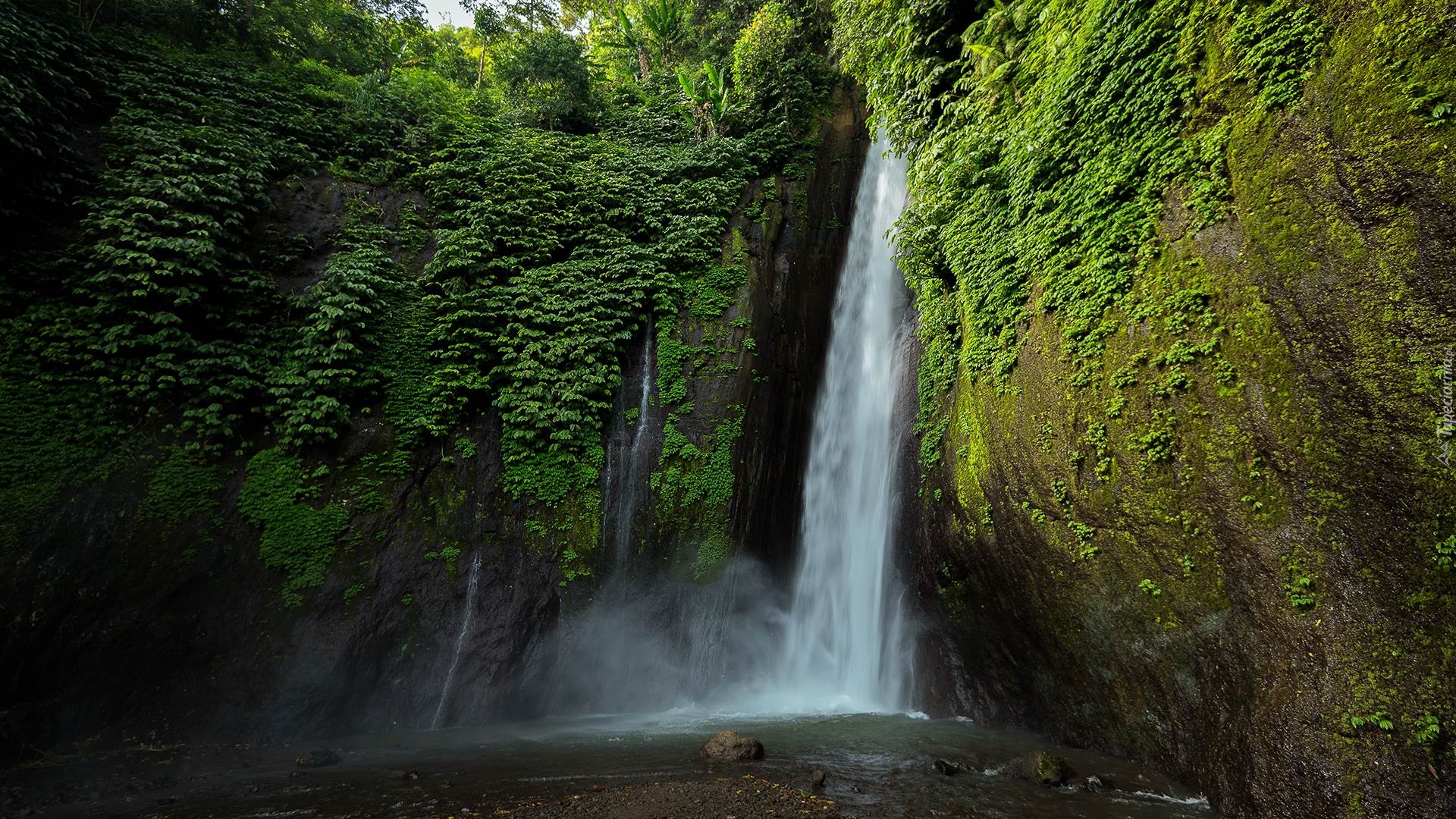 Edytor tapety: Zielone rośliny na skale obok wodospadu
