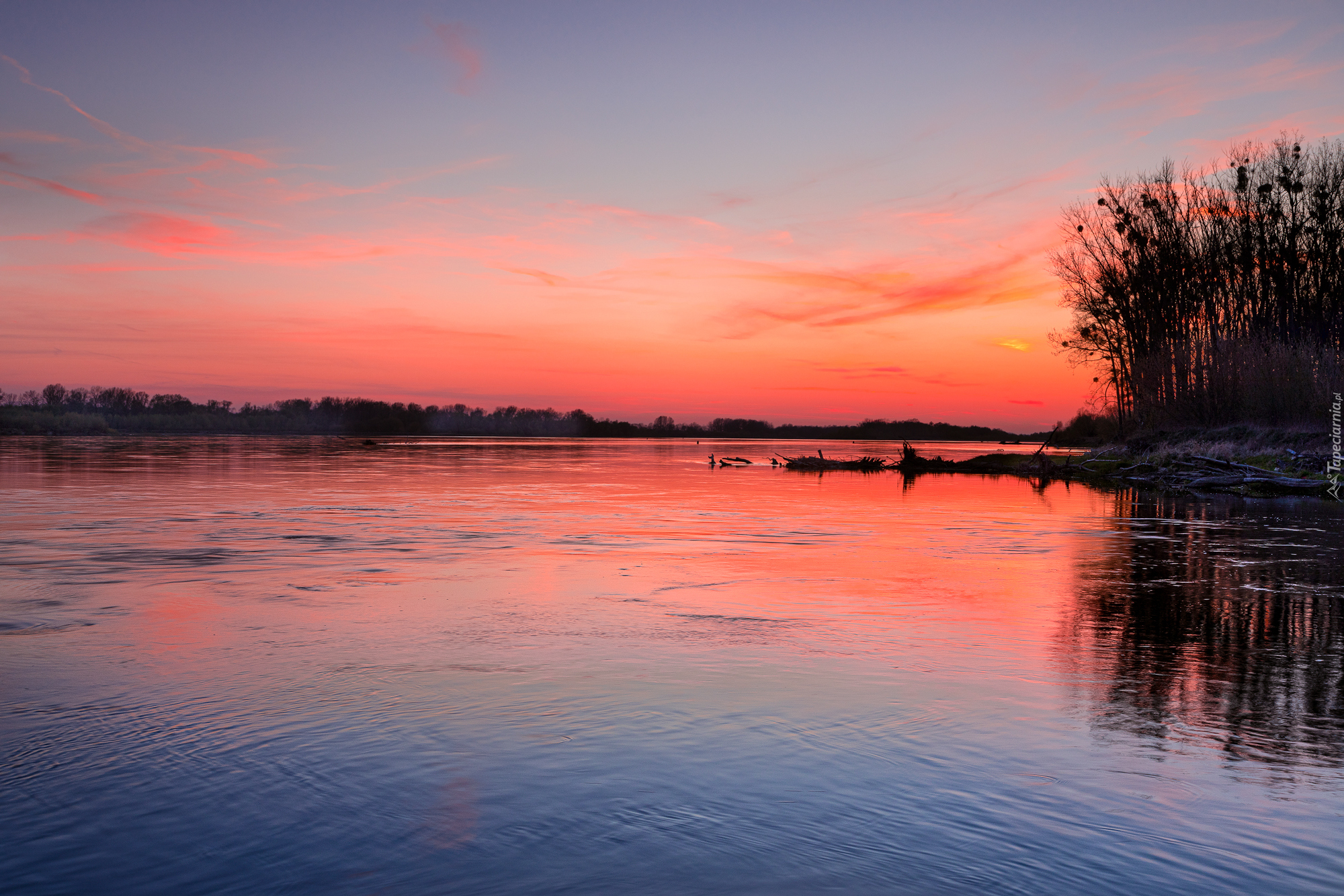 Edytor tapety: Widok na zachód słońca znad jeziora