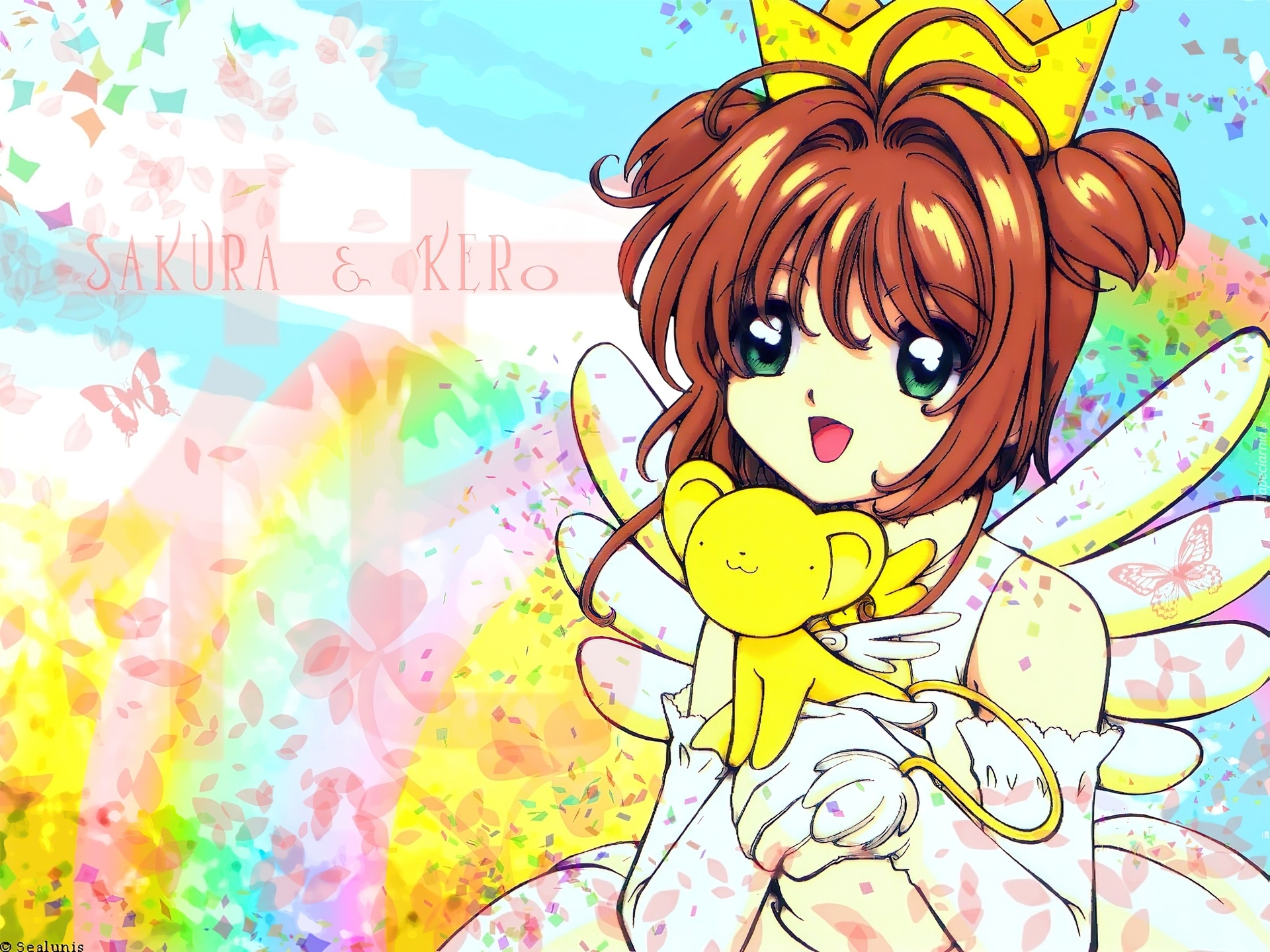 Edytor tapety: Cardcaptor Sakura, dziewczyna, korona, pluszak