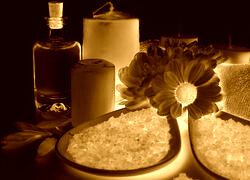Edytor tapety: Świece obok olejku i soli