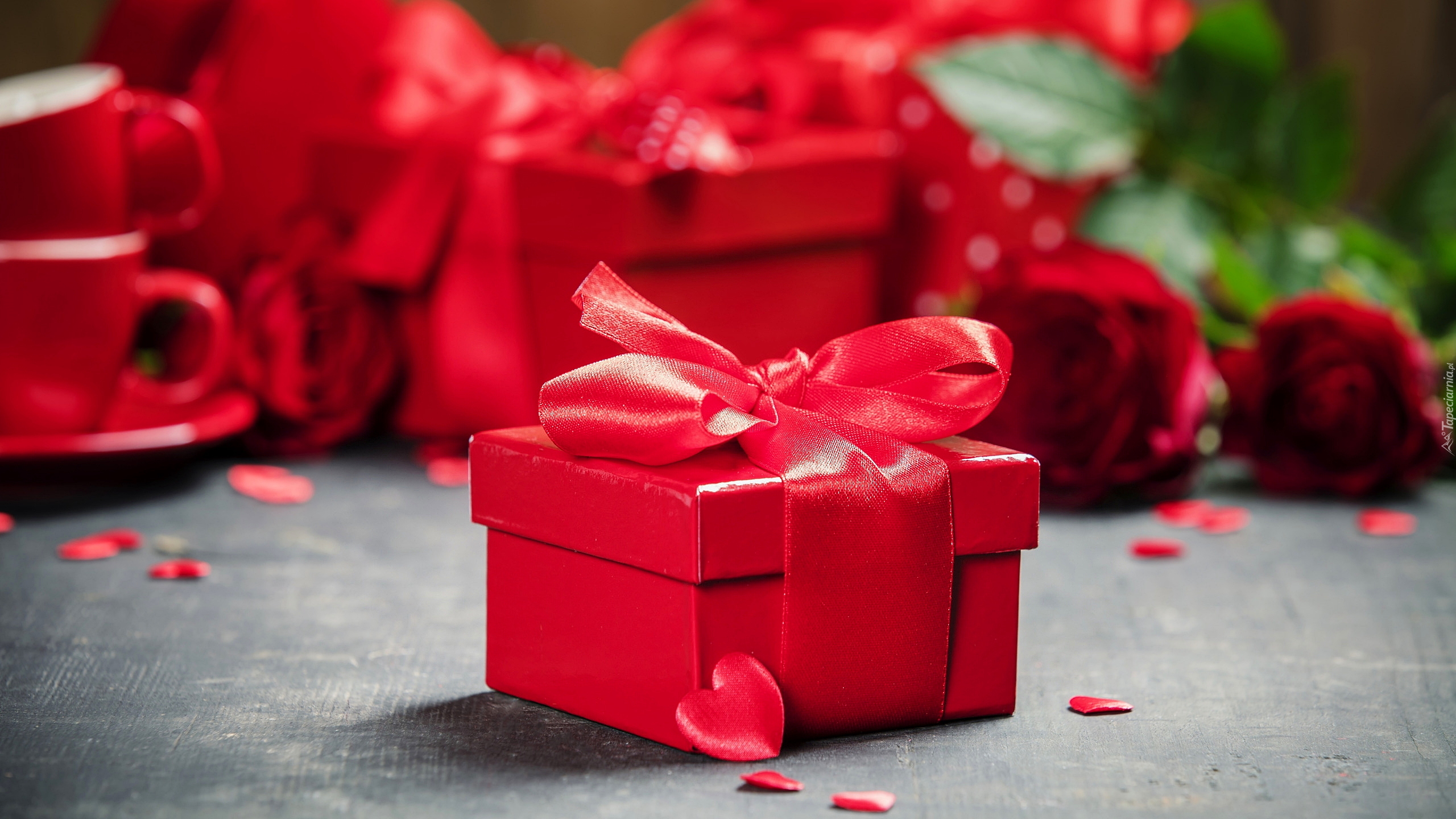 Edytor tapety: Prezent owinięty czerwonym papierem ze wstążką