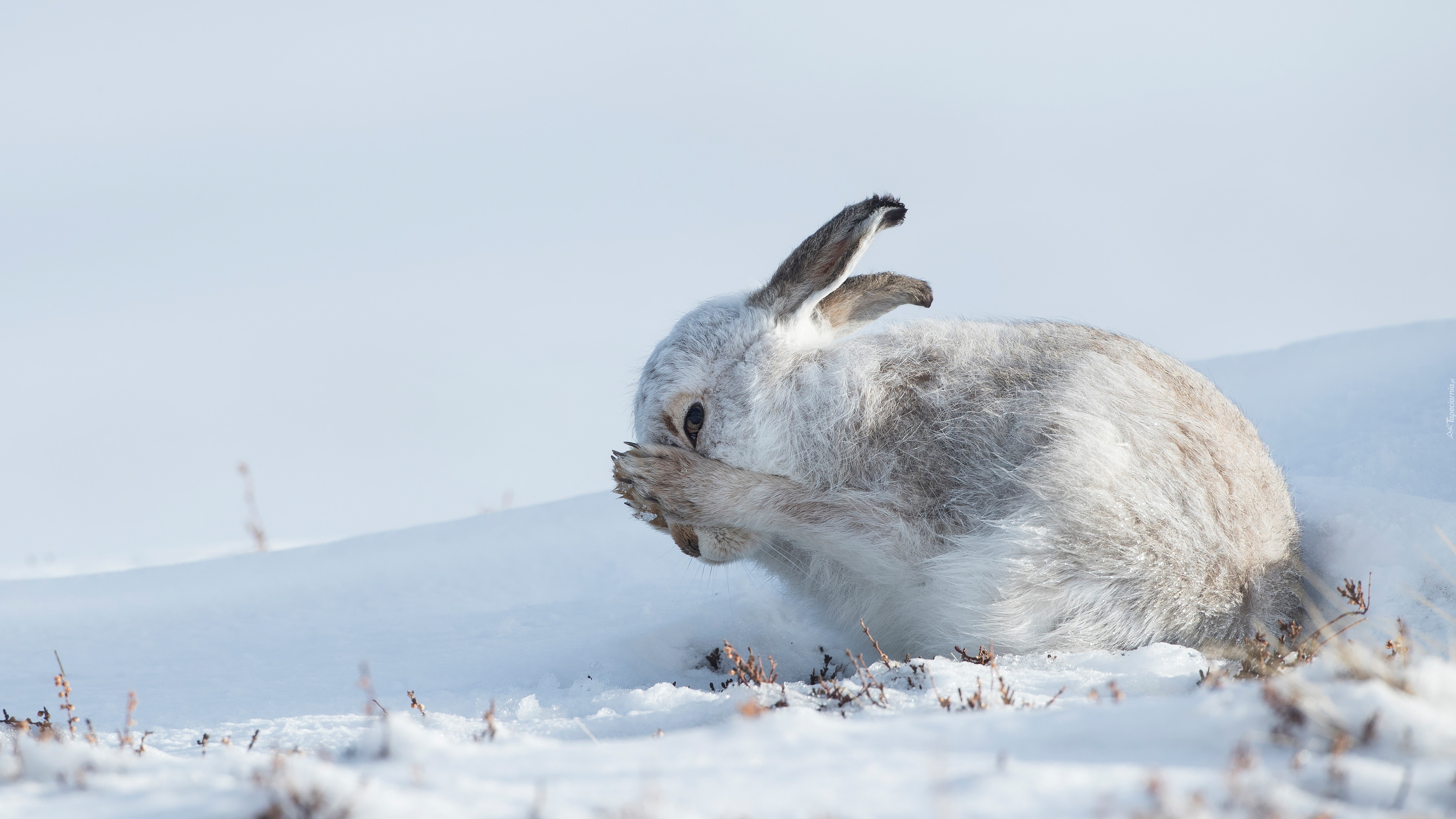 Edytor tapety: Biało-szary zając na śniegu