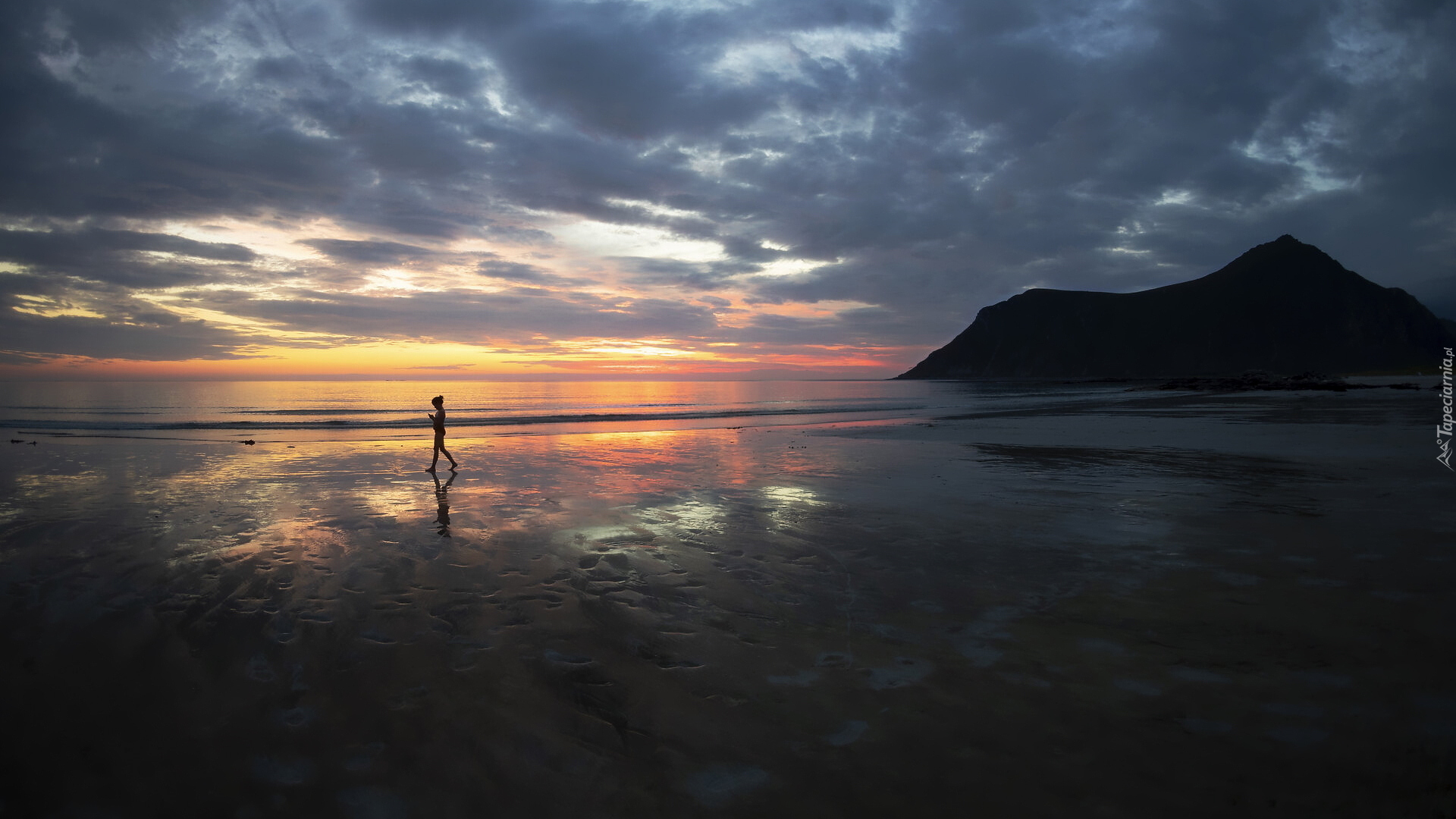 Edytor tapety: Dziewczyna na plaży w Flakstad