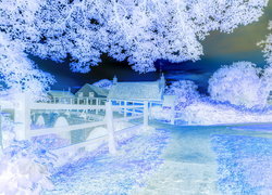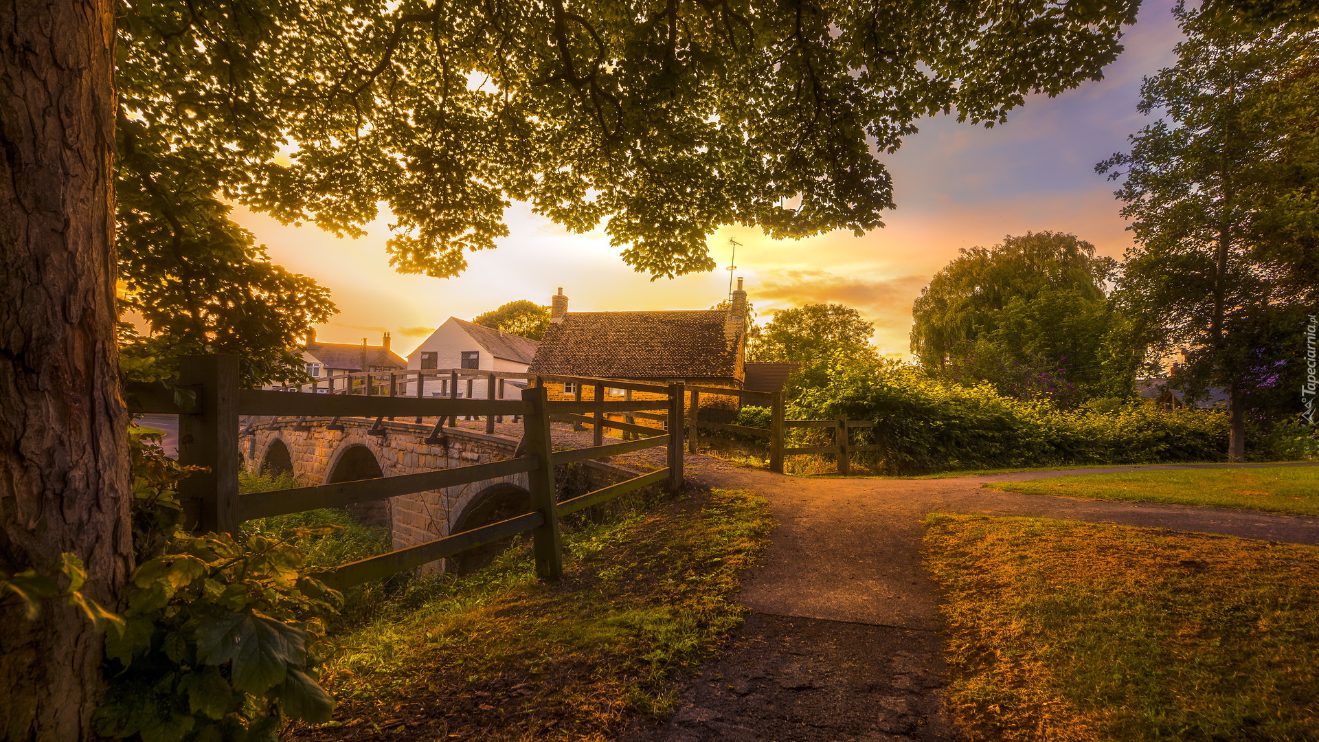 Edytor tapety: Domy i mostek w angielskiej wsi Medbourne