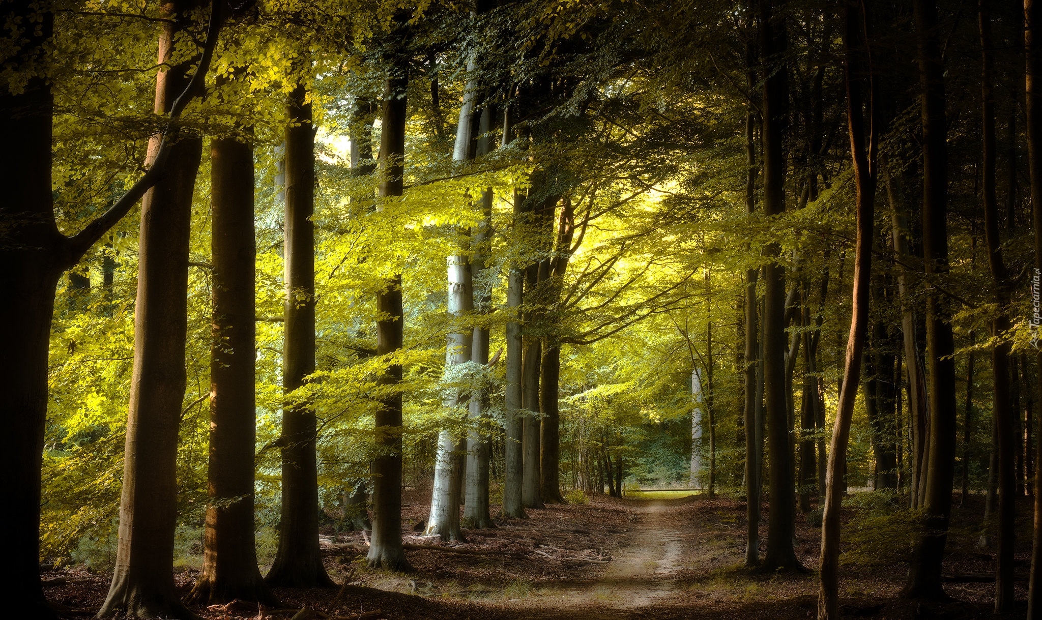 Edytor tapety: Ścieżka wśród zielonych drzew