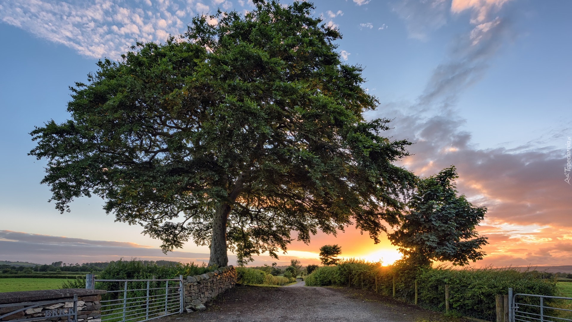 Edytor tapety: Rozłożyste drzewo przy ogrodzeniu