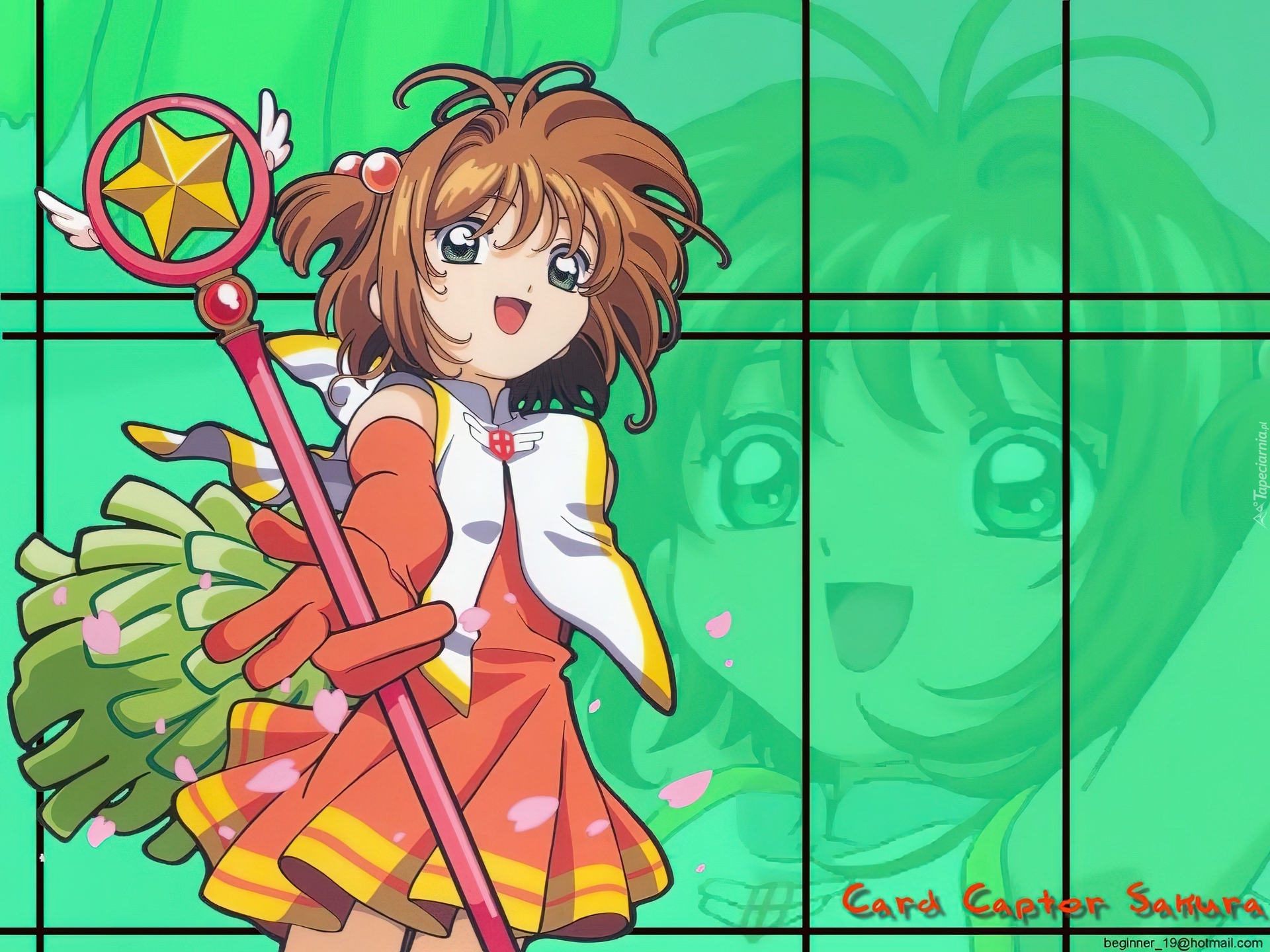 Edytor tapety: Cardcaptor Sakura, kobieta, kij, twarz, napis