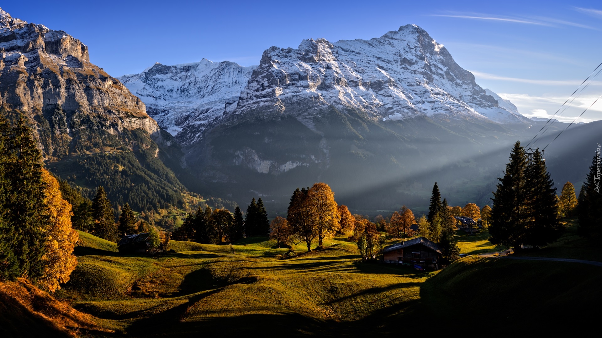 Edytor tapety: Szwajcarska wioska Grindelwald na tle Alp Berneńskich
