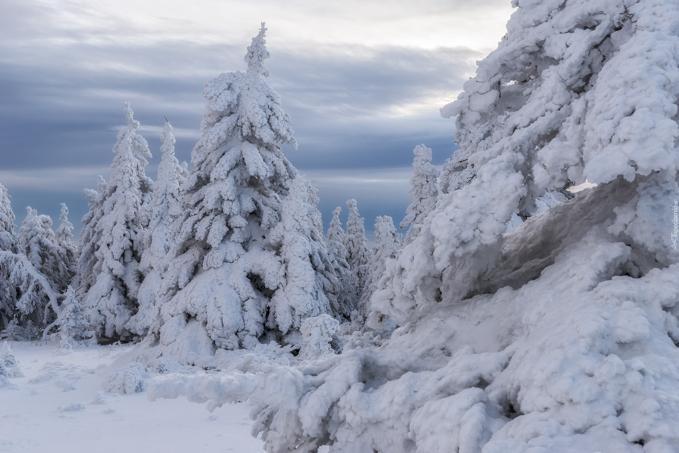 Edytor tapety: Mocno zaśnieżone drzewa