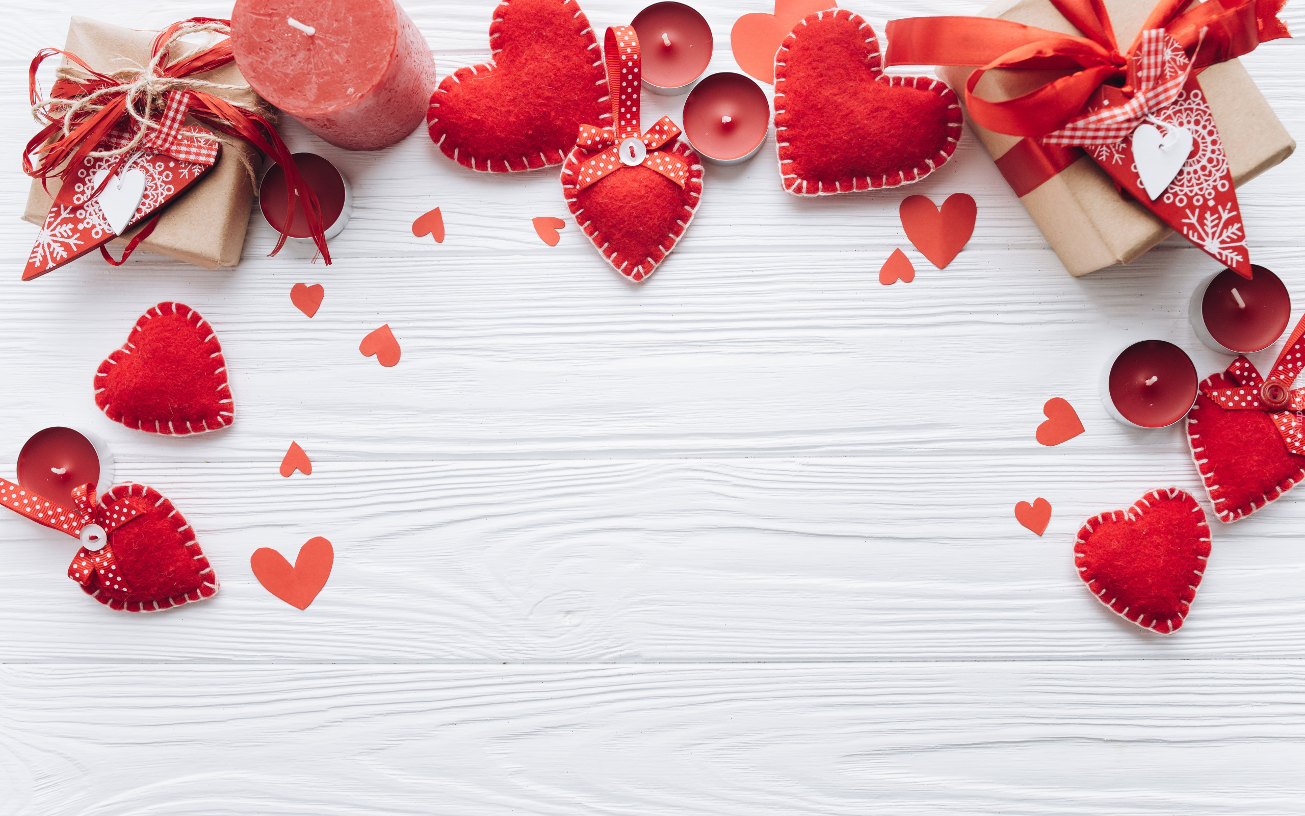 Edytor tapety: Walentynkowa kompozycja na jasnych deskach