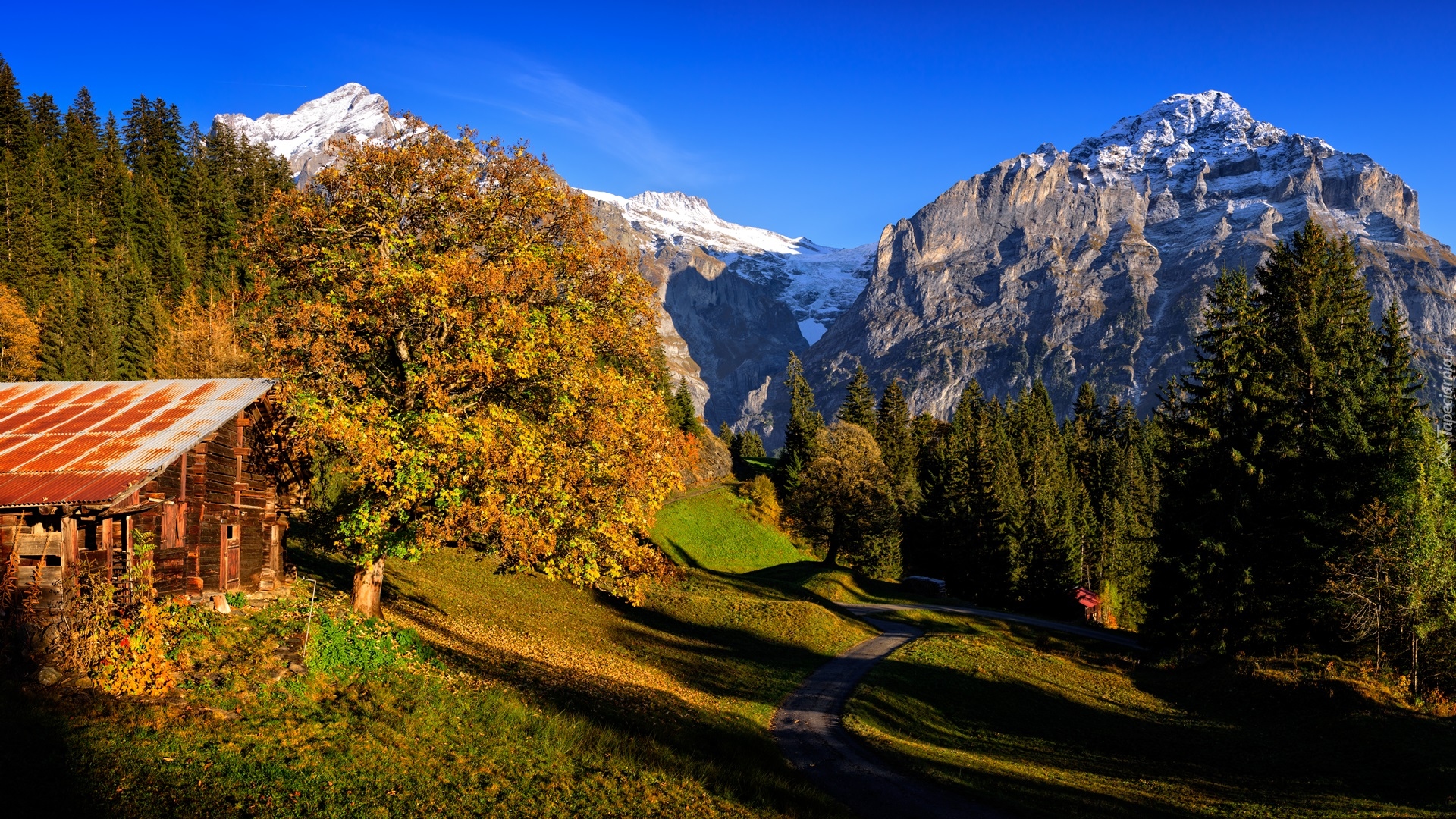 Edytor tapety: Widok z wioski Grindelwald na Alpy Berneńskie
