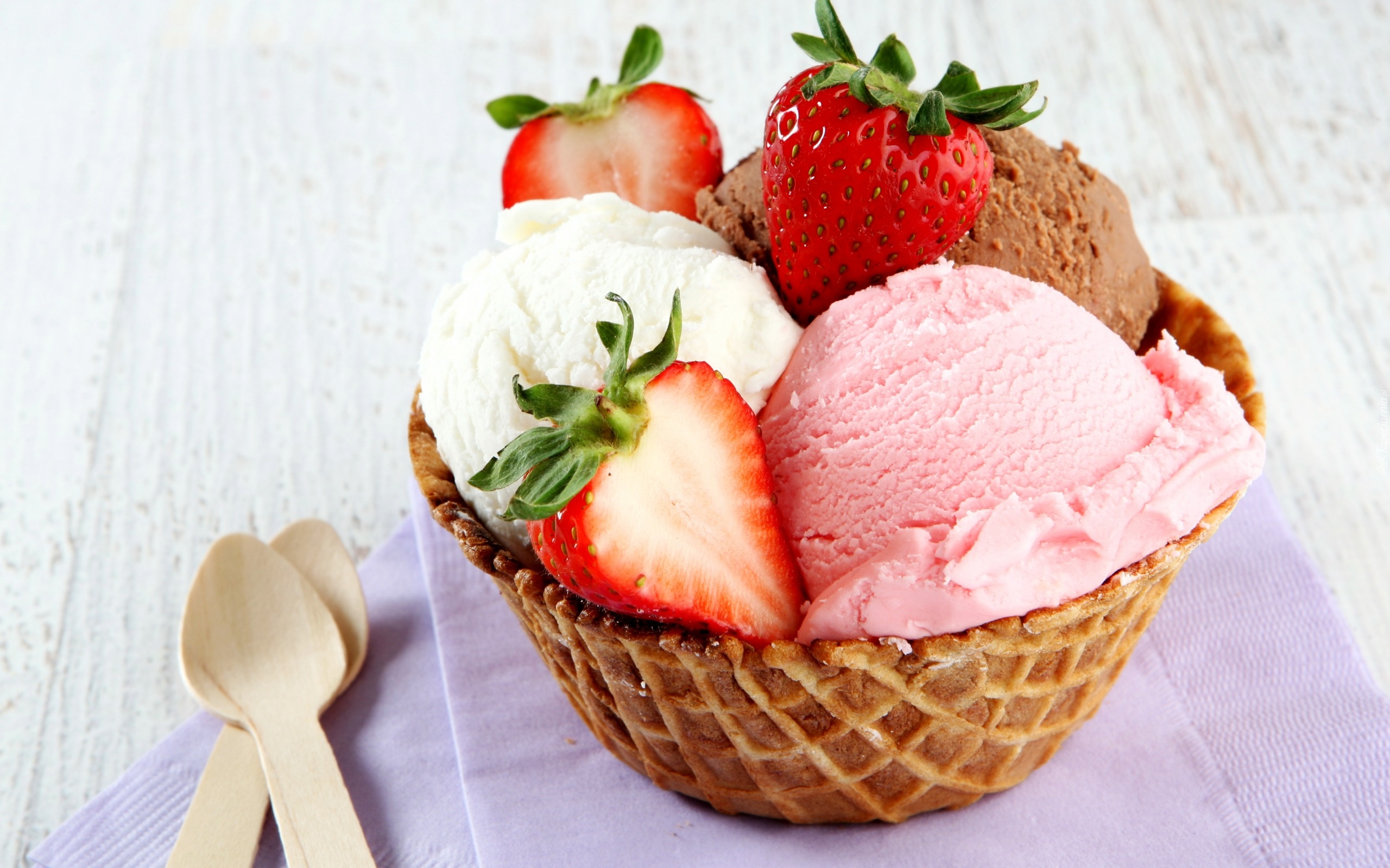 Edytor tapety: Lody w miseczce waflowej