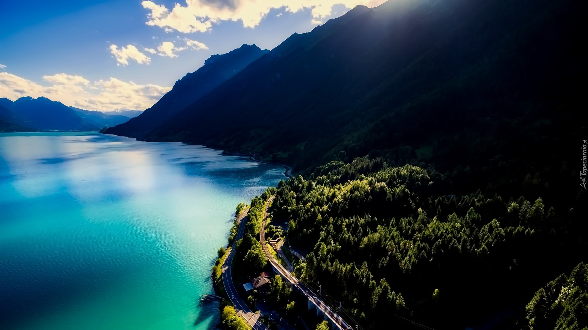Edytor tapety: Droga nad górskim jeziorem