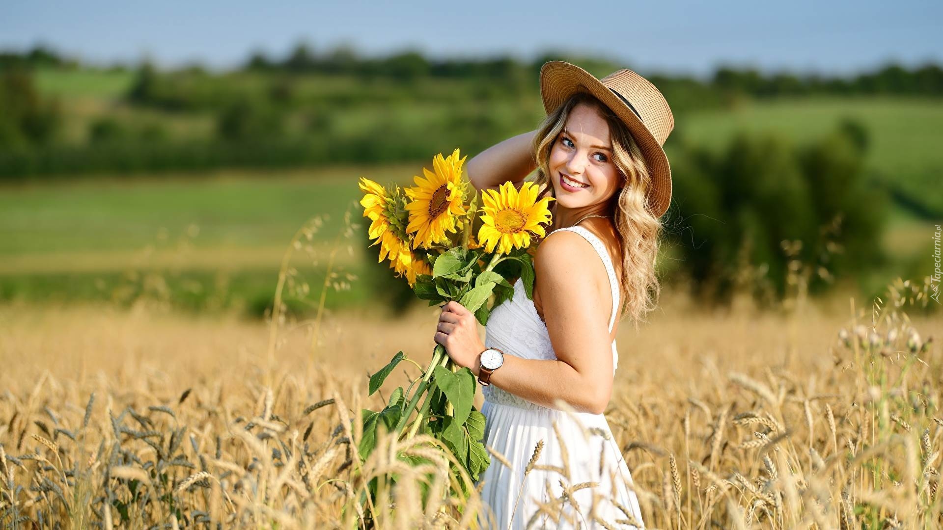 Edytor tapety: Dziewczyna ze słonecznikami