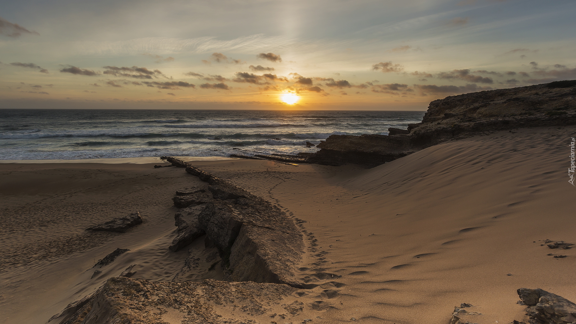 Edytor tapety: Ślady na piasku nad brzegiem morza