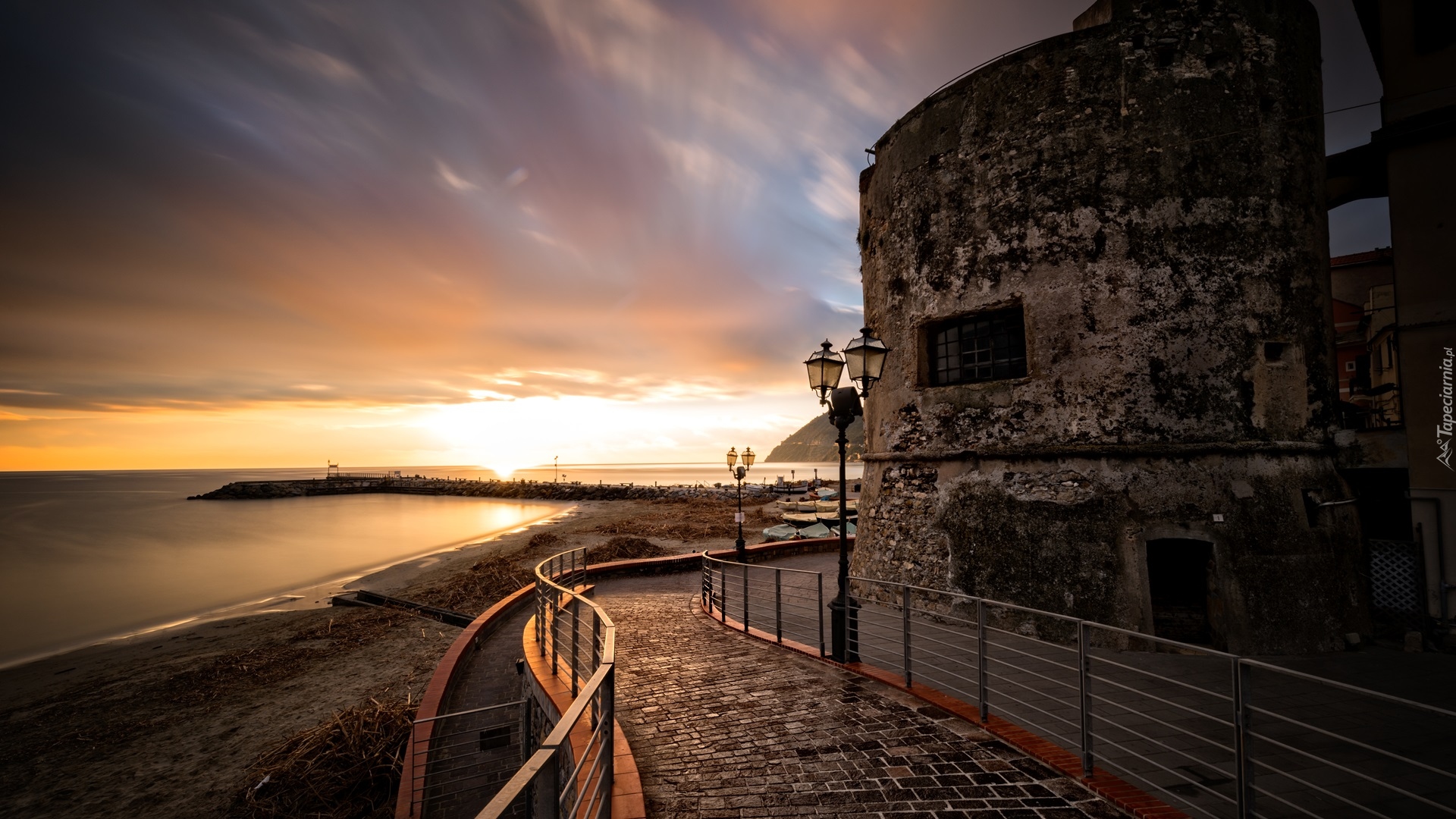 Edytor tapety: Latarnie obok budowli