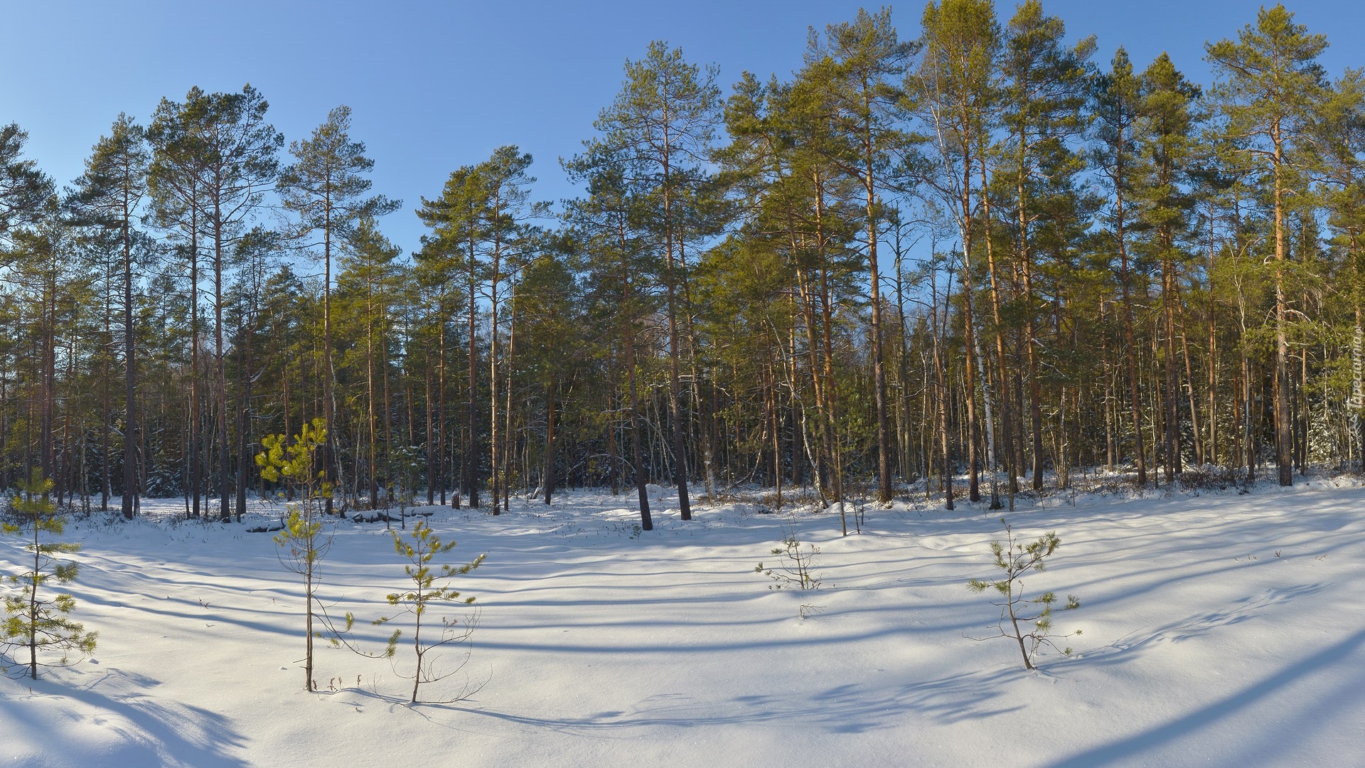 Edytor tapety: Sosny w zimowym lesie