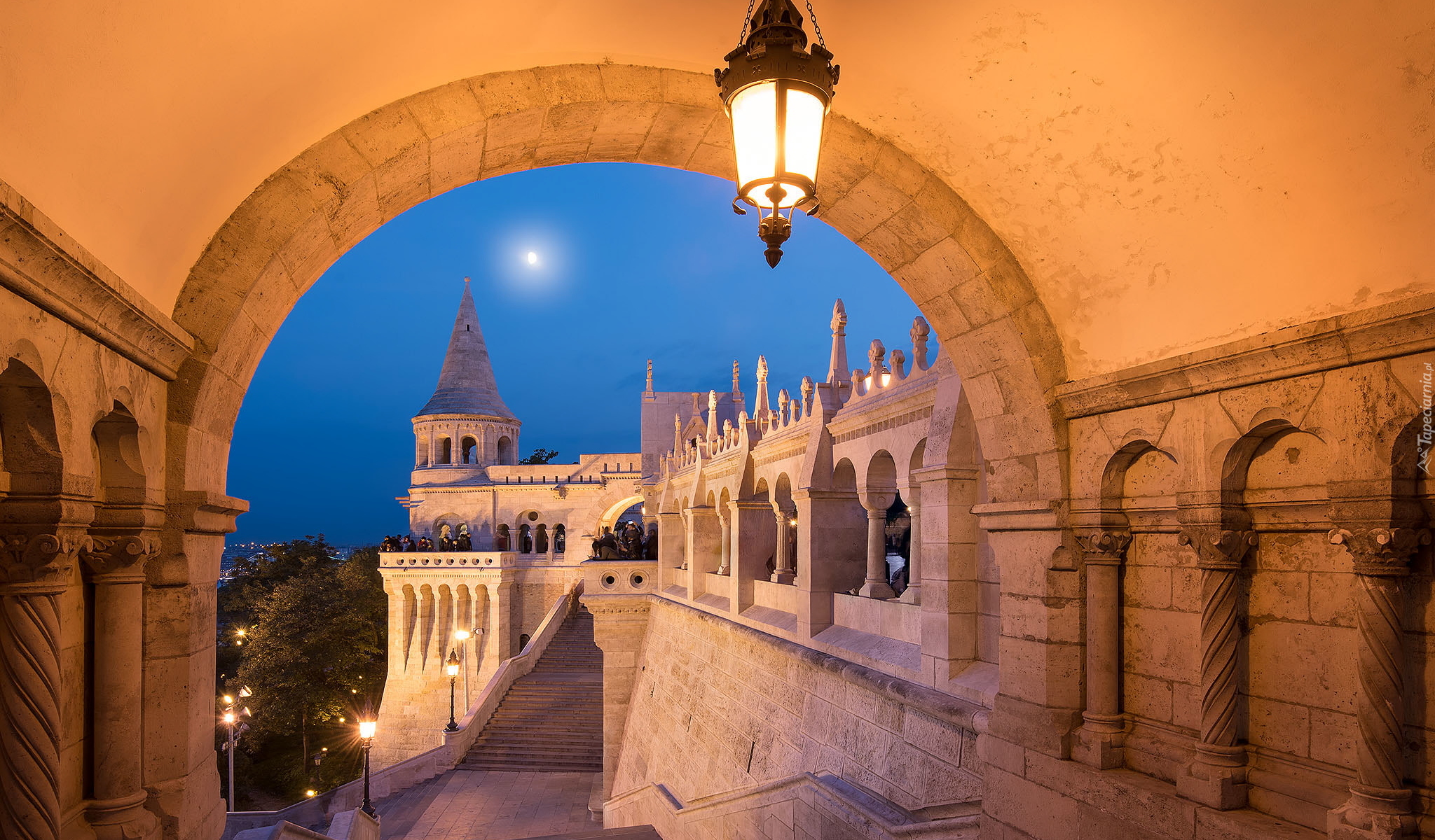 Edytor tapety: Oświetlona Baszta Rybacka w Budapeszcie
