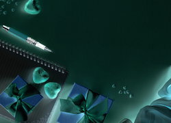 Edytor tapety: Prezenty obok notesu i pralinek
