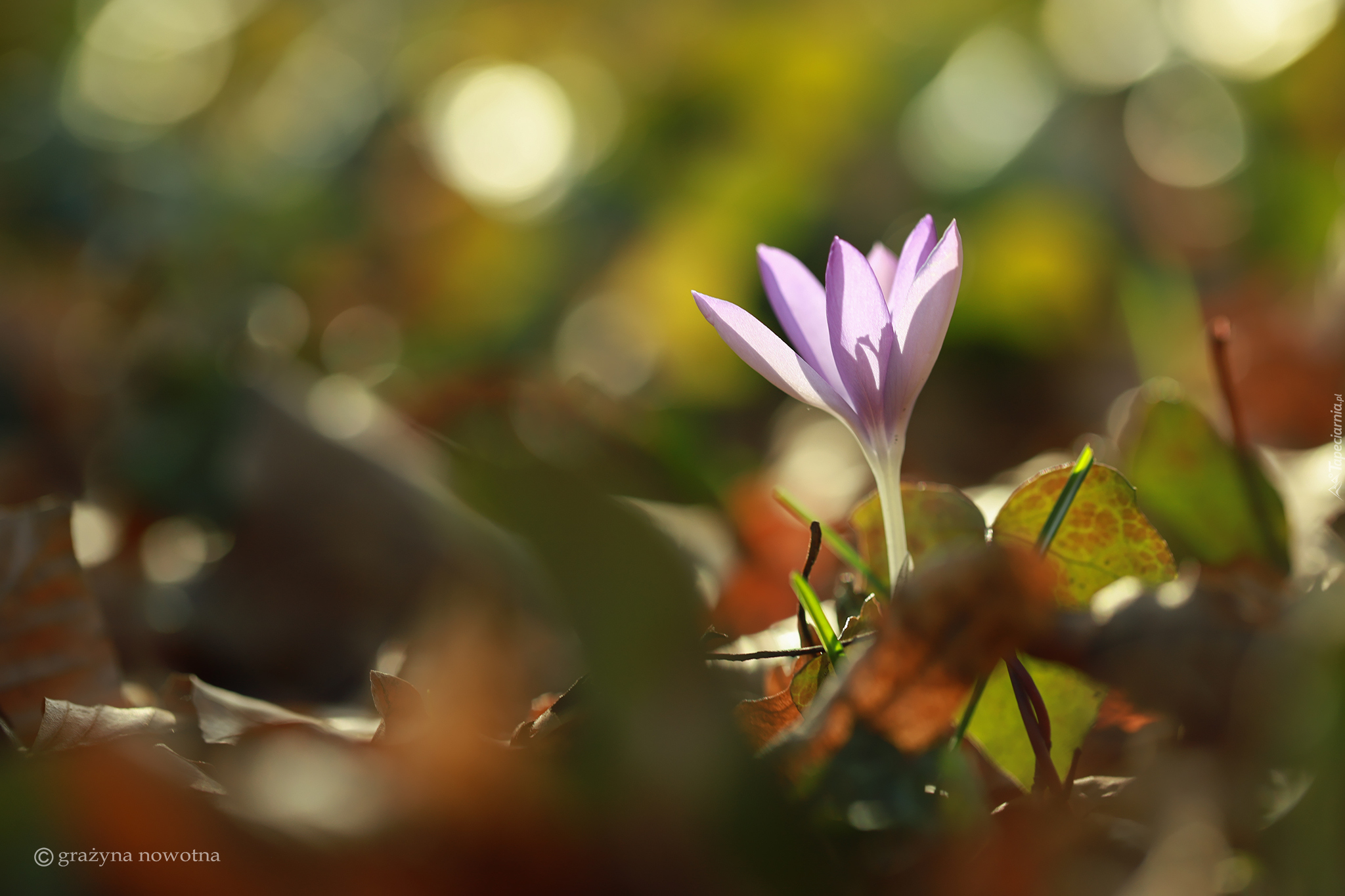 Edytor tapety: Rozświetlony krokus w liściach