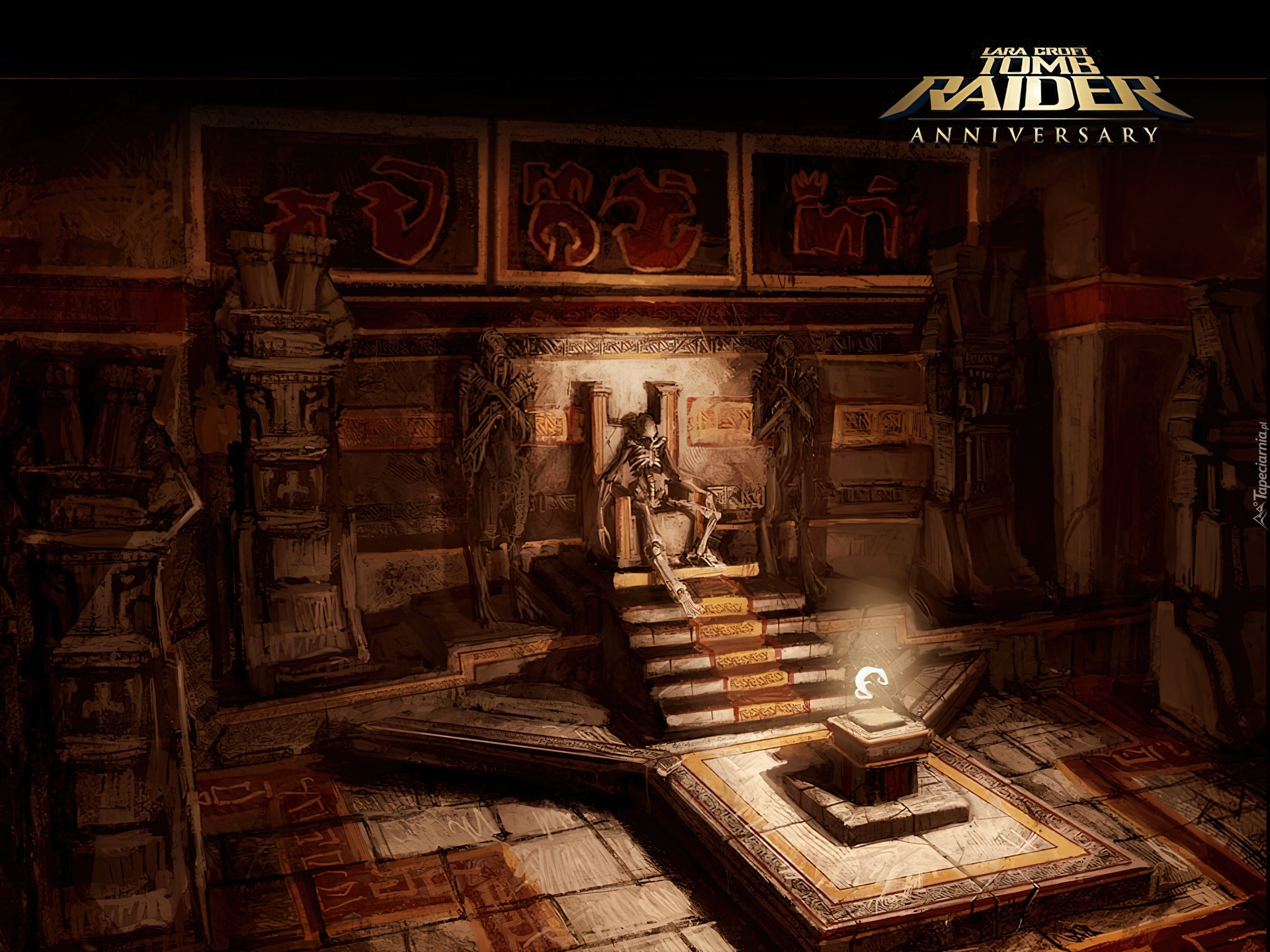 Edytor tapety: tron, schody, szkielet, kościotrup, Tomb Raider Anniversary